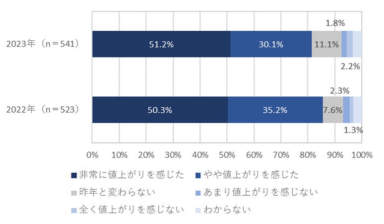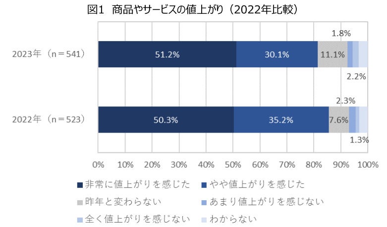 2022年に続き商品やサービスの「値上がりを感じた」人は約8割超に