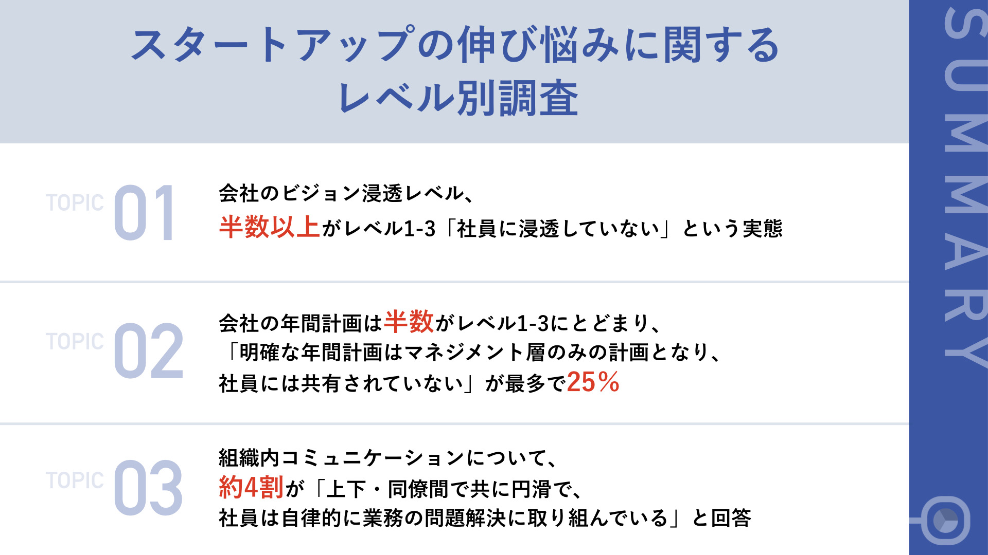 スタートアップにおける経営実態をレベル別で調査!「ビジョン」や「年間計画」の浸透に苦戦か...