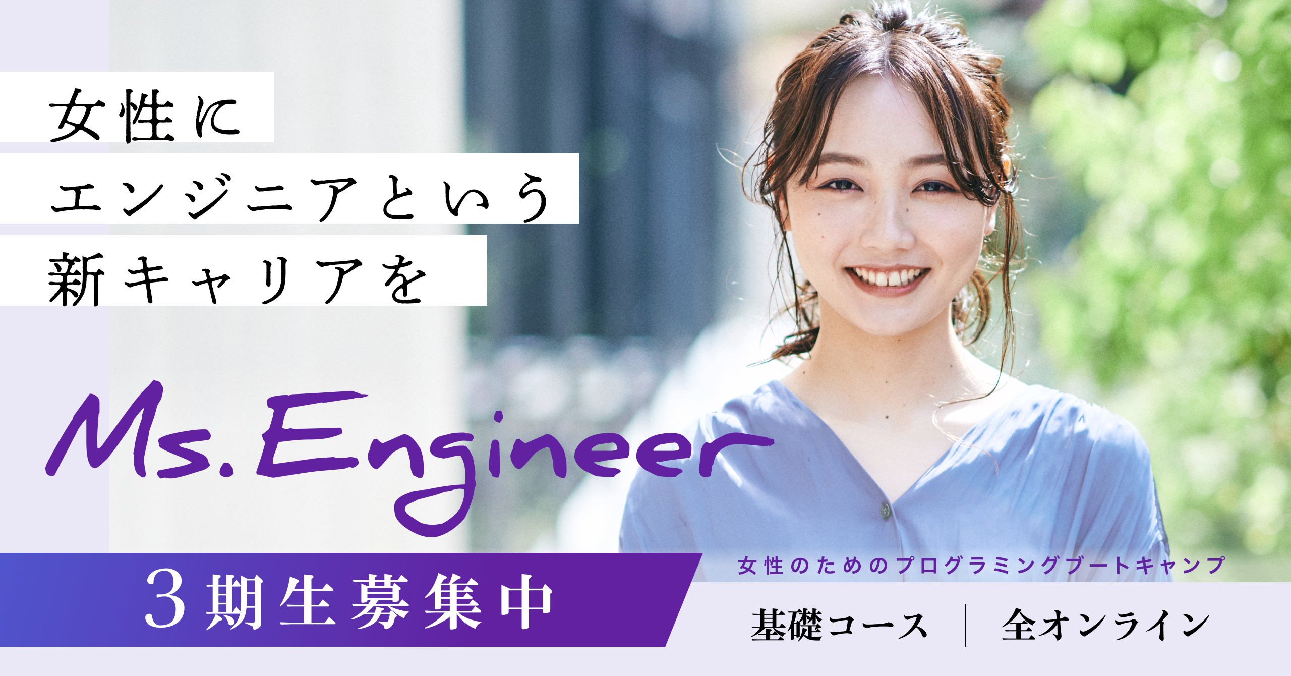 Ms.Engineerでは引き続き、女性が時間や場所に選ばずに自由な働き方ができる世界を実現するため、世界で通用する女性エンジニアの輩出に取り組んでまいります。
