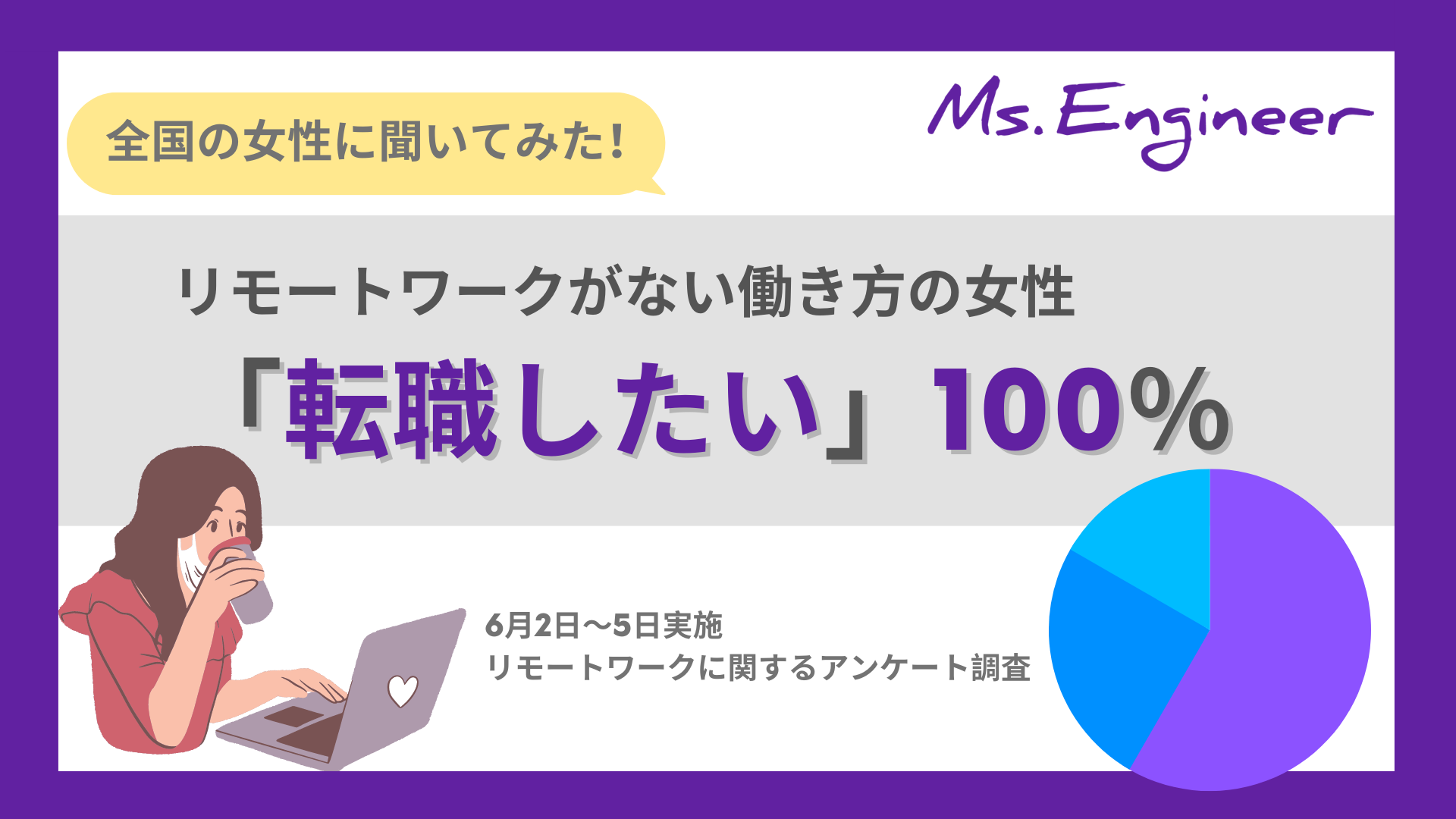 女性の多様な働き方を提唱し、自ら週休3日・フルリモートを実装するMs.Engineerでは改めて女性がリモートワークまたは出社することについてどのような考えを持っているのか、リアルな実態を知るとともに、リモートワークをベースとする新しい働き方が持続可能なキャリアに影響するかを調査致しました。
