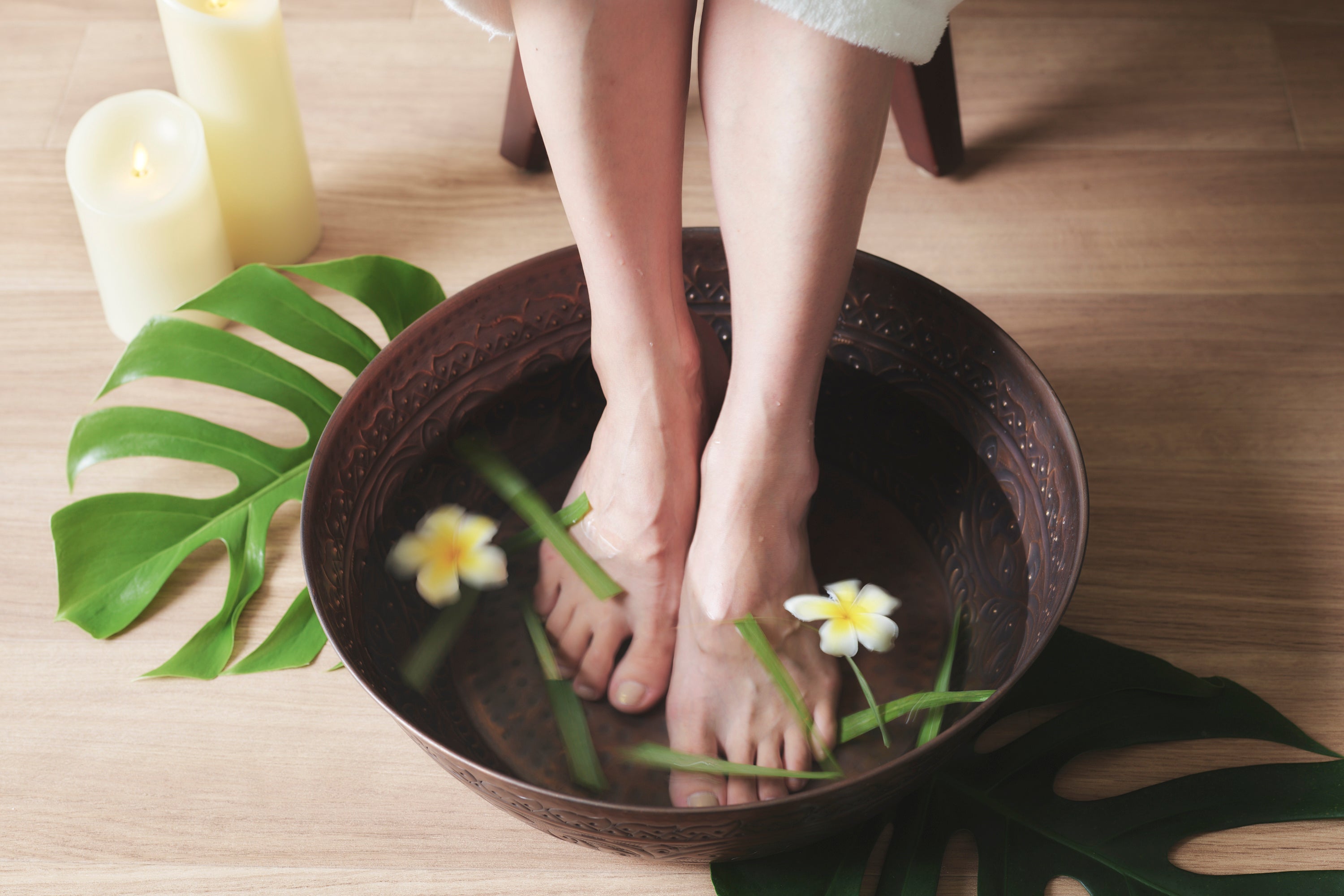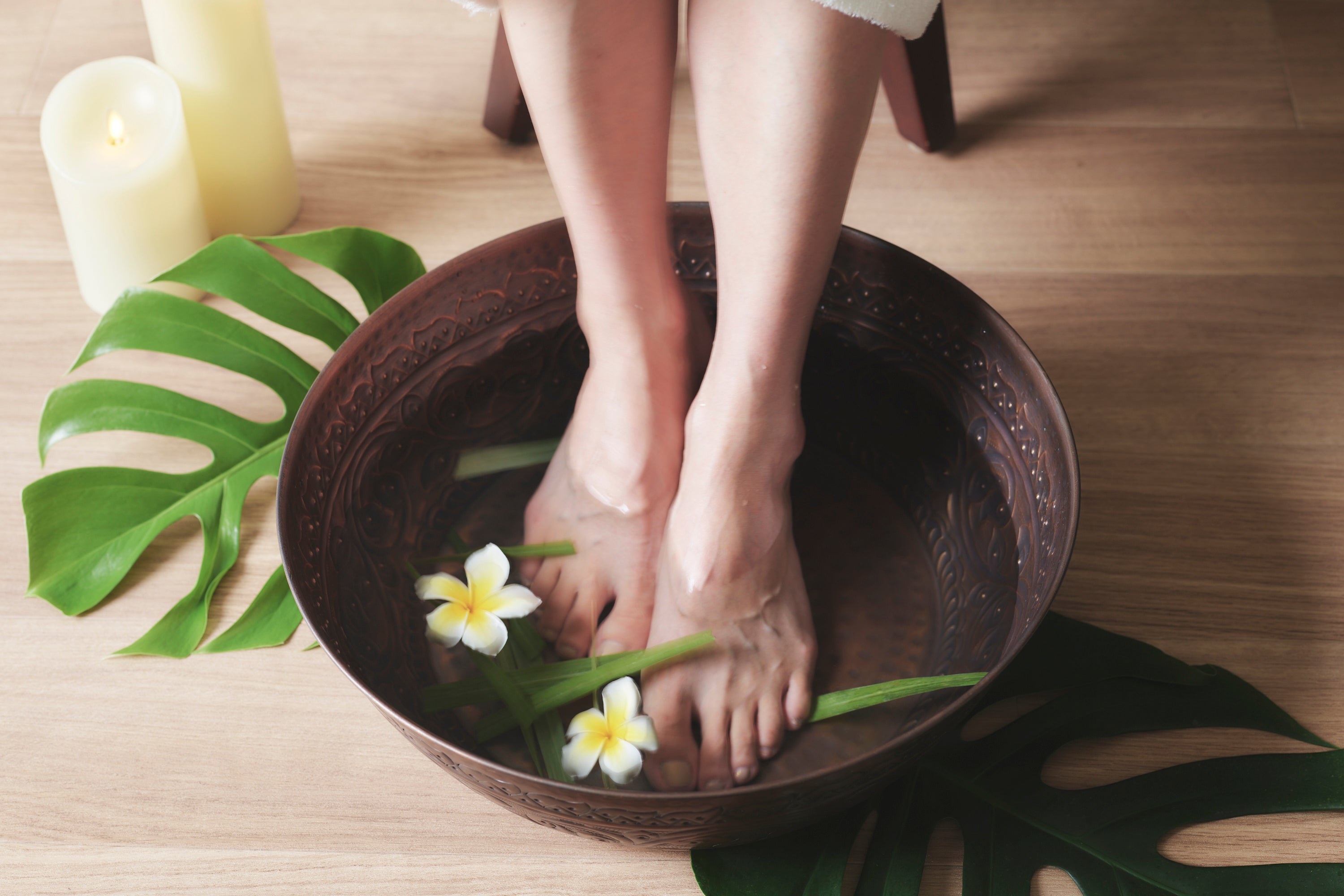 シャワーでリフレッシュした後は、静脈に沿ったマッサージで全⾝に溜まった不要な⽔分や⽼廃物の排出を促します。