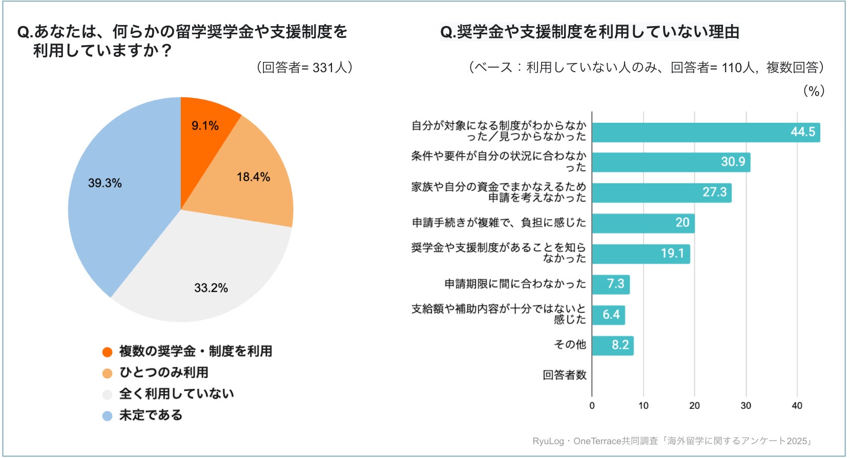 「留学の奨学金・支援制度」利用者は3割にとどまる