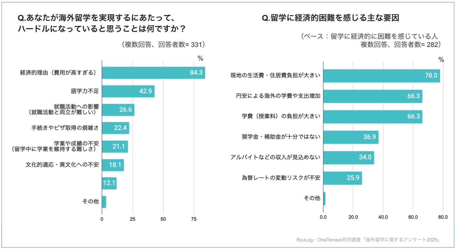 留学奨学金プラットフォームを運営する株式会社RyuLogと海外大生就活支援を提供する株式会社One Terraceは、海外留学に関心のある18歳以上の日本人学生に対して、「海外留学に関するアンケート」を共同実施しました。