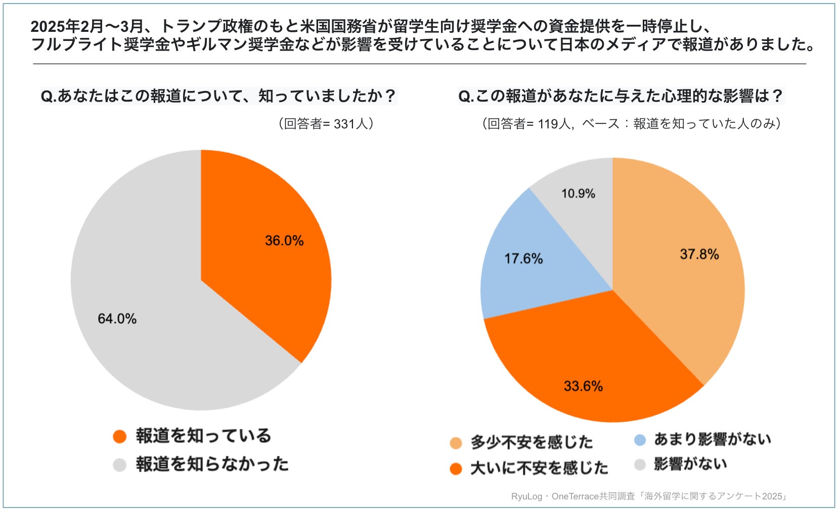 ・米国政府による留学奨学金停止報道 「不安を感じた」7割
