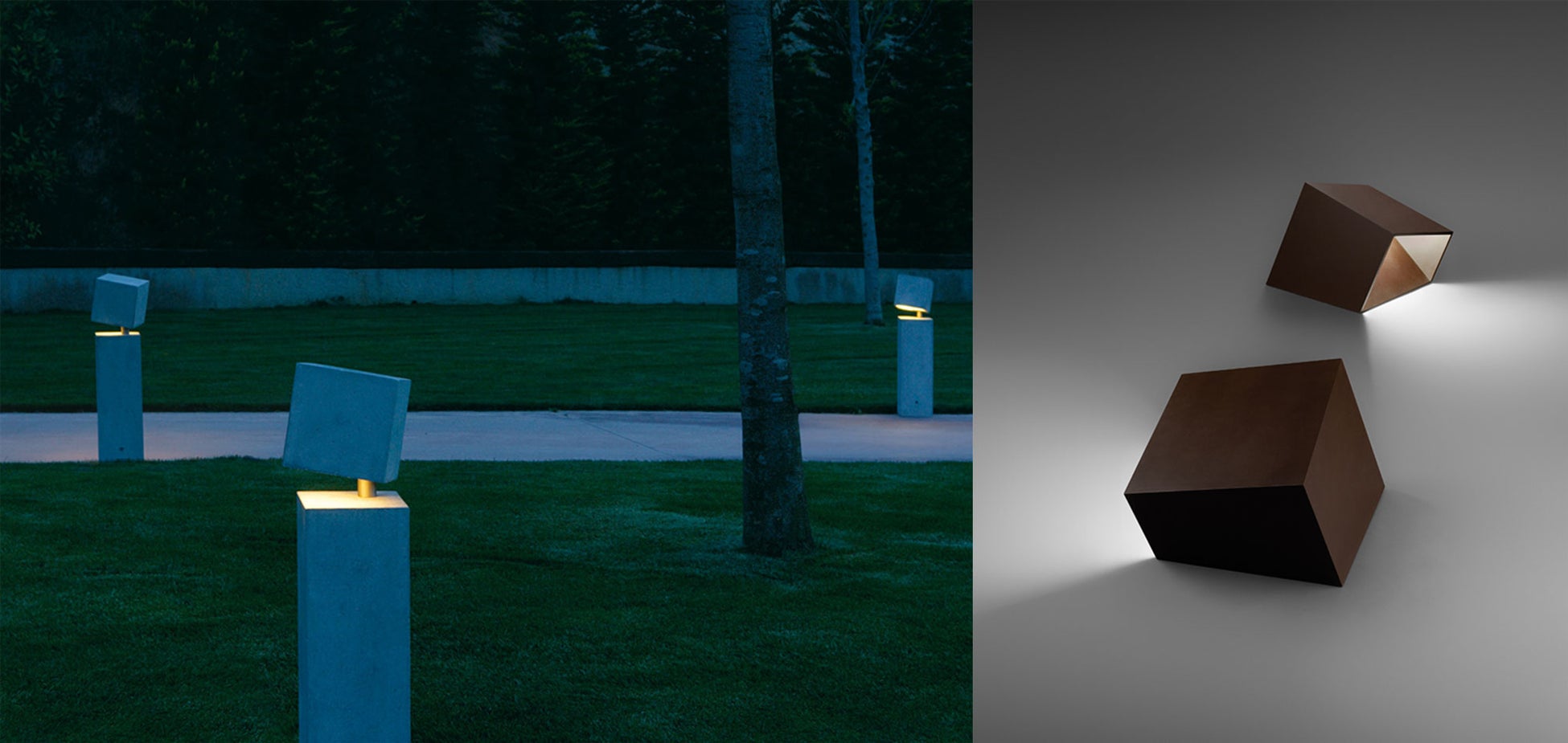 前衛的な彫刻を思わせるBreakは、その構築的なスタイルが魅力です。夜は下方から光がひろがり、ランドスケープを静かに引き立てます。