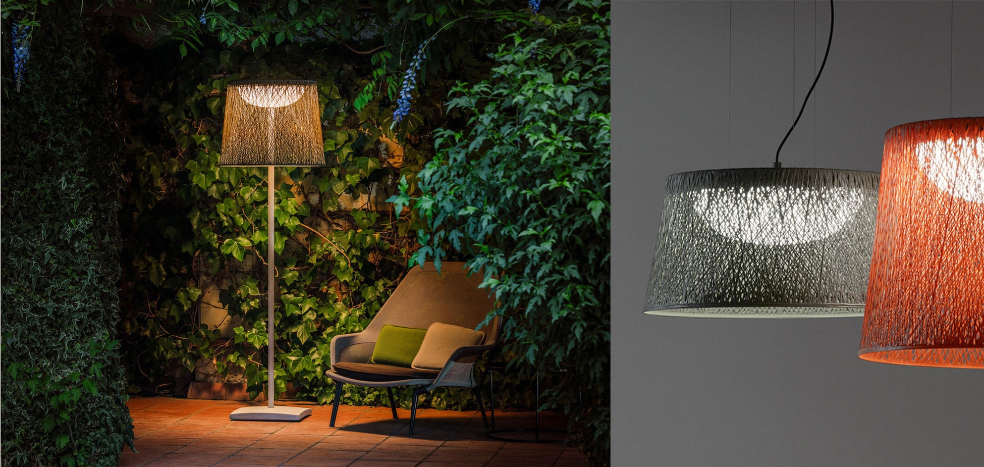 スケールの大きさと印象的なシルエットが特徴のWindは、複雑に編み込まれたグラスファイバー製のシェードが、あらゆる屋外空間で存在感を放ちます。