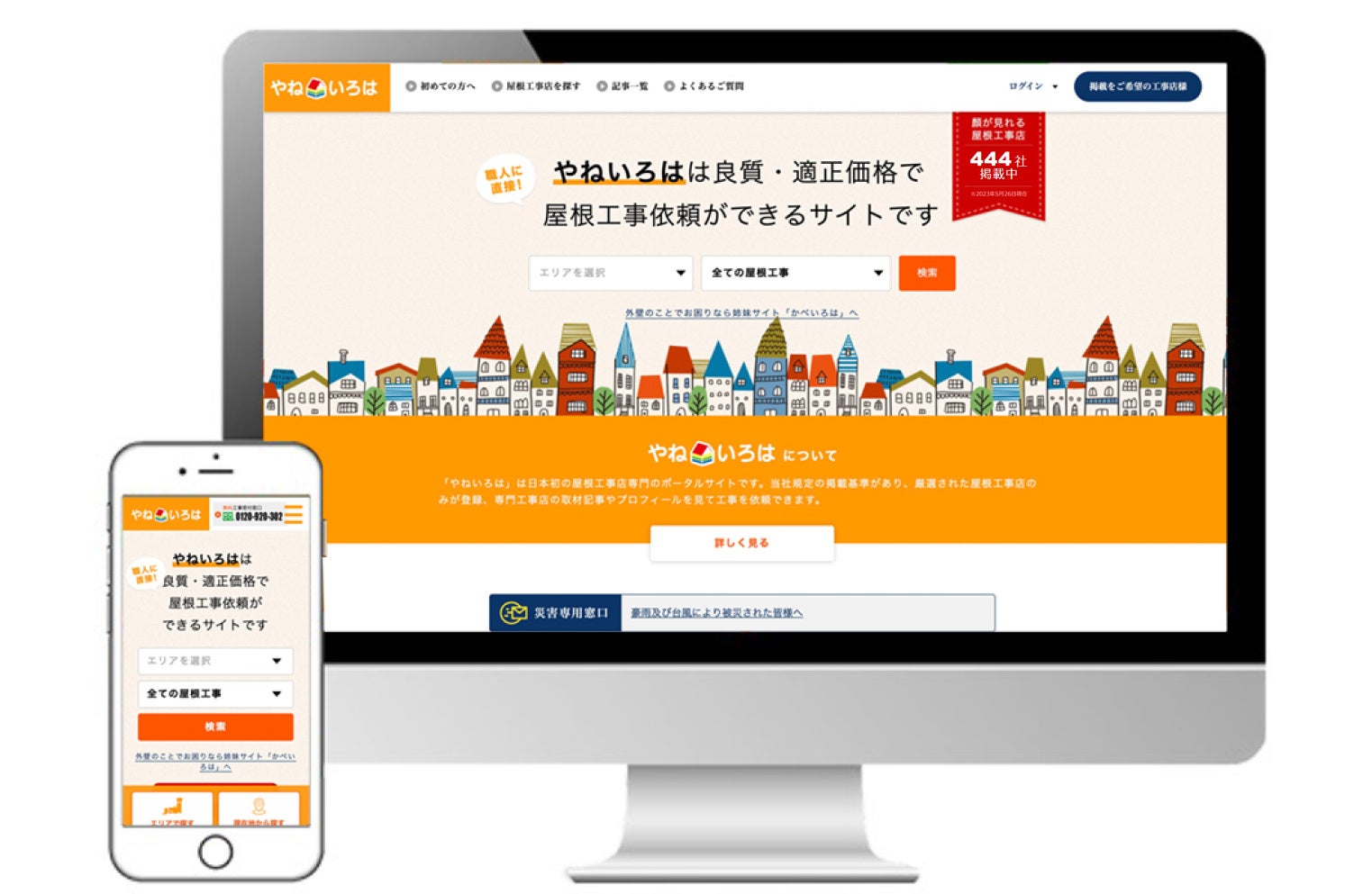 屋根工事店とエンドユーザーをつなぐポータルサイト「やねいろは」登録工事店の全国制覇を達成、2024年に1,000店の登録を目指す