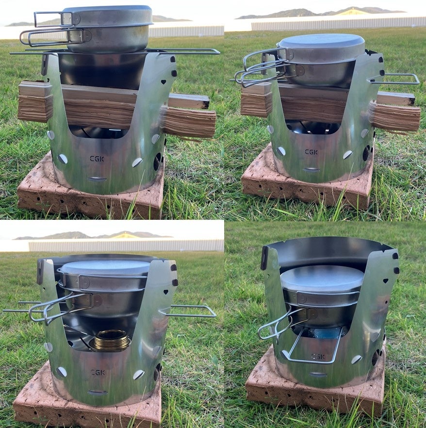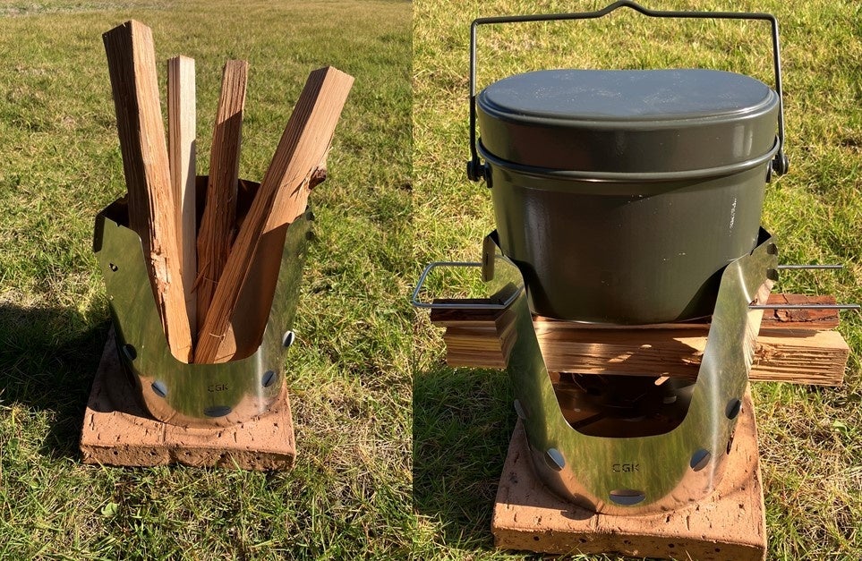 アウトドア好きのロボット工業系の機械設計者が、軽くて薄くて、使い易いウッドストーブを目指した結果完成した軽量コンパクトな焚き火台です。