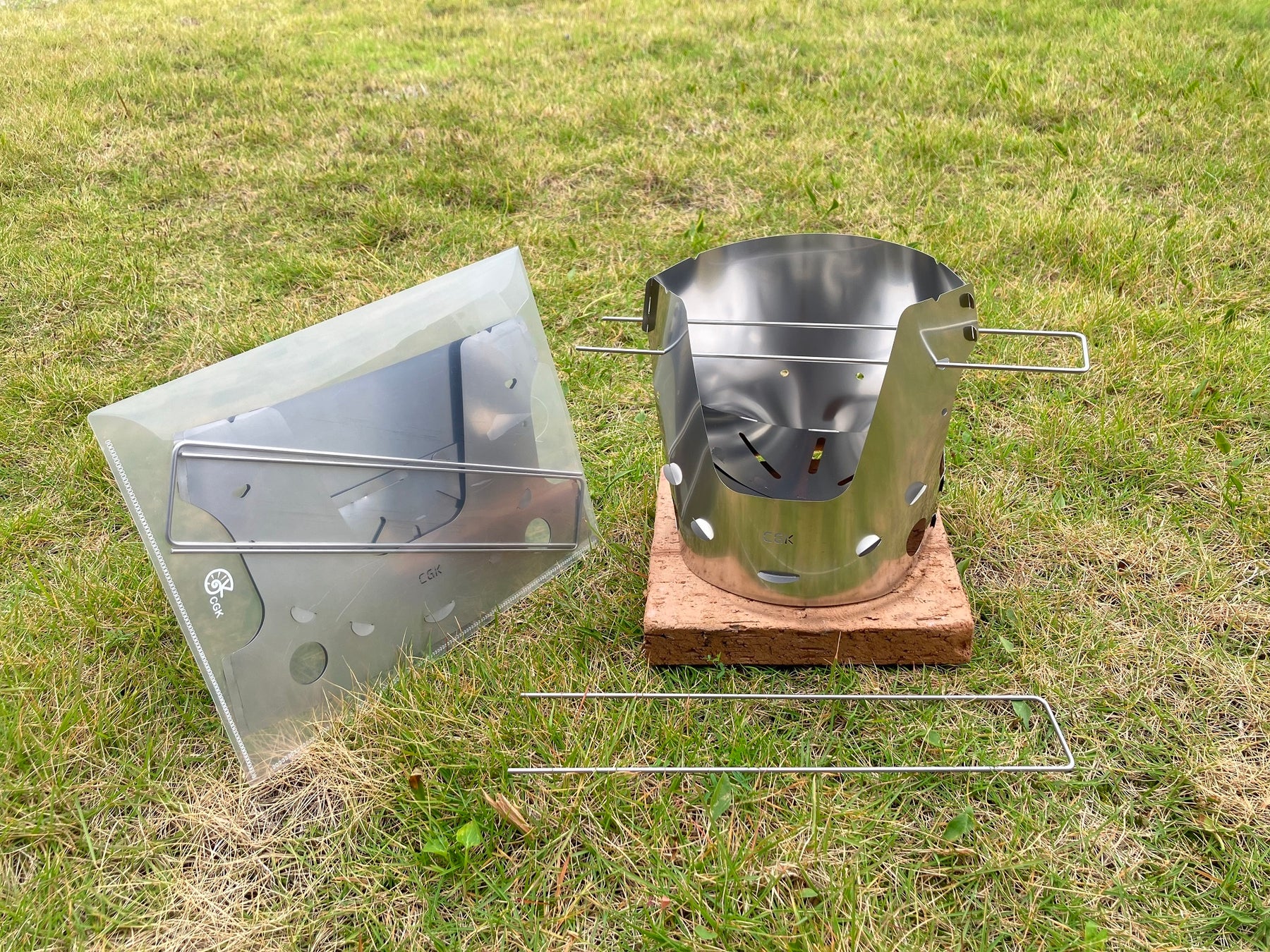 パコッと開いて組立簡単、軽くて薄くて、長い薪も使える、4段階の高さで、調理も焚き火もしやすい、マルチなウッドストーブです。