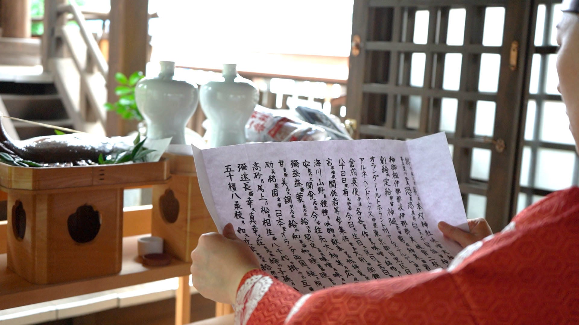 式は、本村神社(味噌天神宮)の黒川弘美 禰宜によって、執り行われました。祝詞の中では、お互いの味噌が美味しくできるよう、またお互いの国の交流、人同士の交流が今後も発展するように読み上げられ、祈りが込められました。