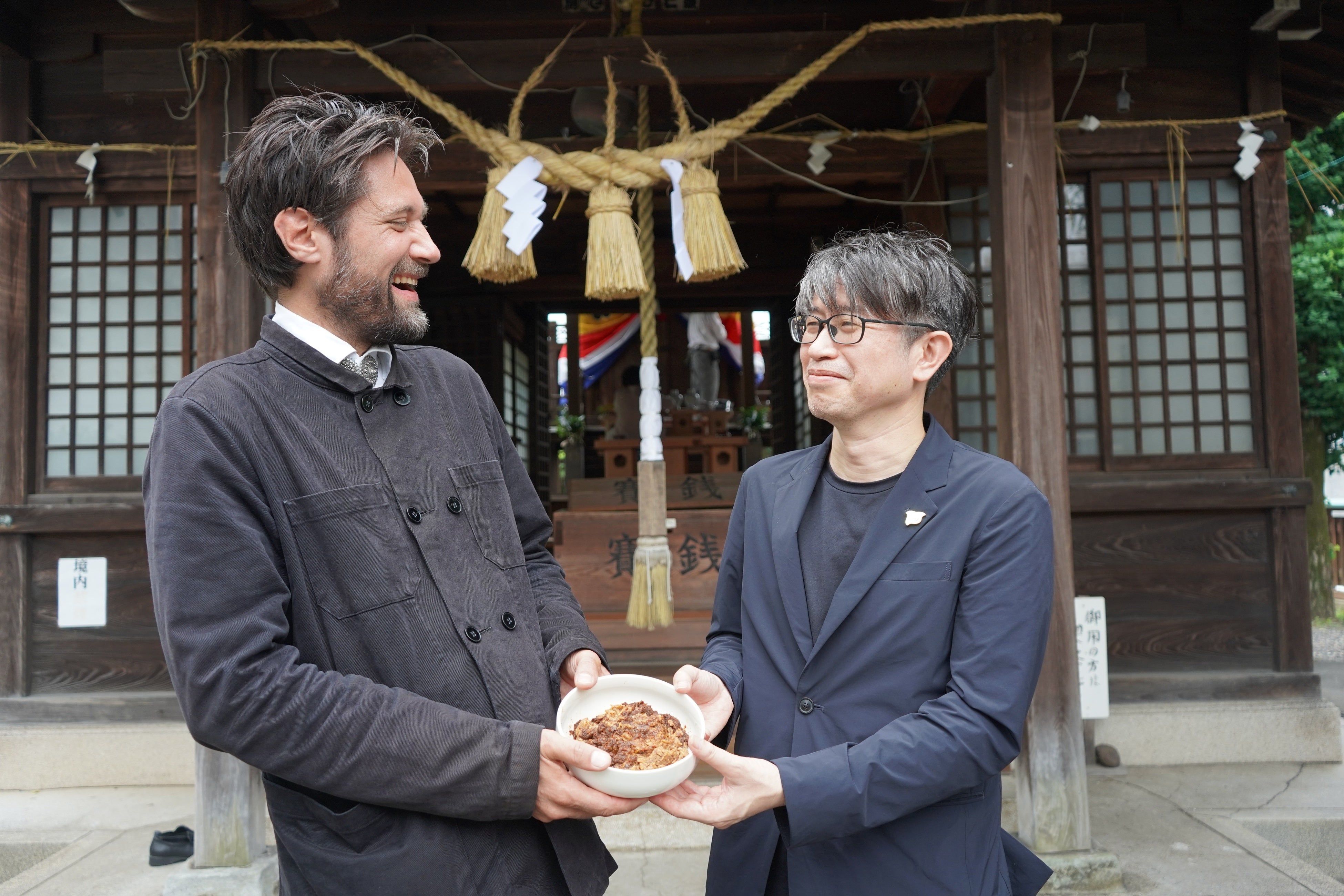 During a miso mix wedding ceremony on the 8th of July 2023, Arne Hendriks and Hidetoshi Kuranari, CEO of Creative Project Base inc. mixed their home-made miso’s from The Netherlands and Japan. This first-ever special occasion took place in the Miso Tenjin shinto-shrine, in Kumamoto, Japan.