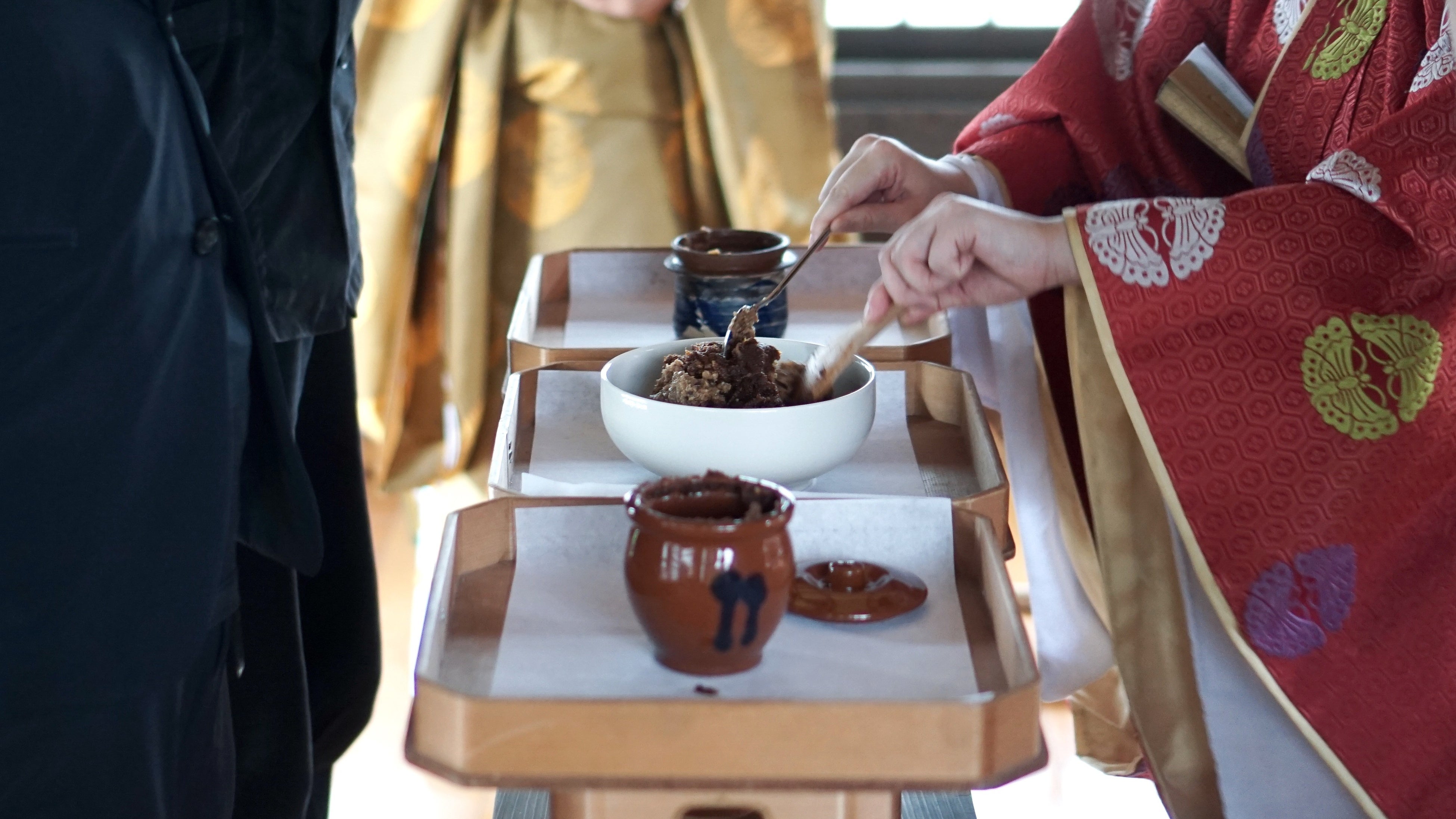 その後、味噌を混ぜる儀式が行われましたが、これは「味噌合わせの儀」と呼ばれました。