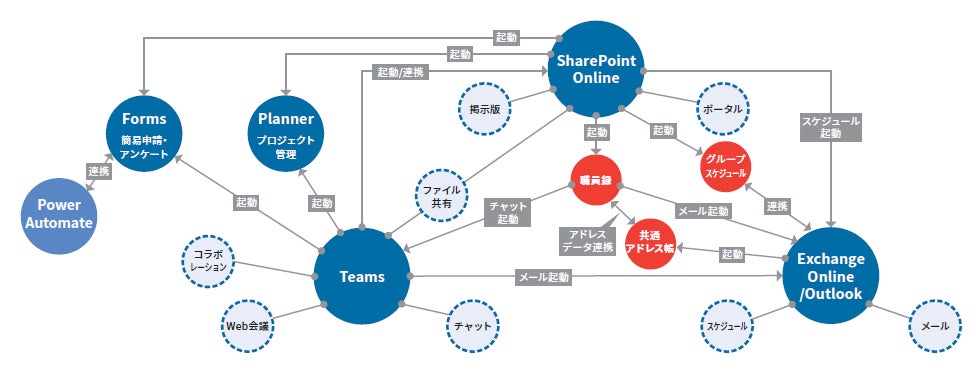 北電情報システムサービスとアルファテック・ソリューションズは、富山県コミュニケーション基盤におけるMicrosoft 365が提供する機能を5,000名にも及ぶ県職員が使いこなすことで、業務の効率化やより良い県民サービスに寄与することを意識しながら、新システムの定着に向けて以下の機能やアドオン製品を開発しました。