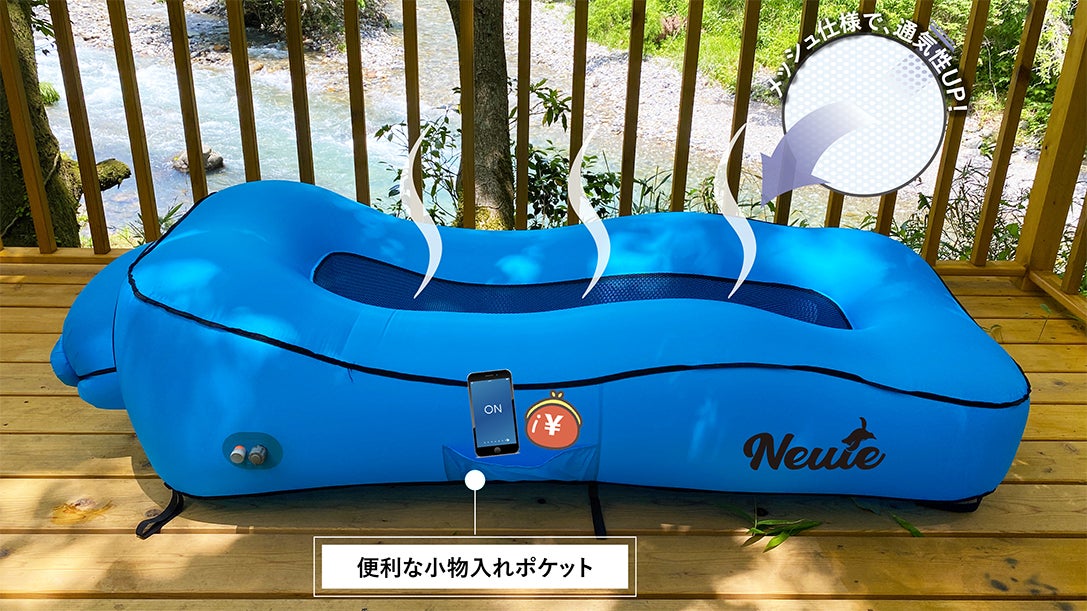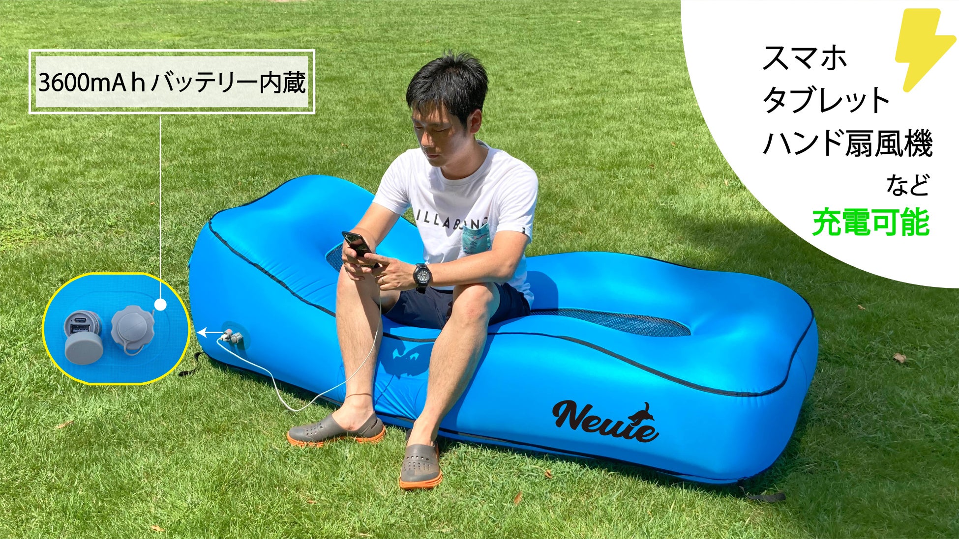 ボタン一つ、約60秒で自動的にエアソファーが完成!バッテリー内蔵の高機能なアウトドアアイテム『ワンタッチ・エアソファー』8月9日(火)より公式サイトにて予約販売スタート