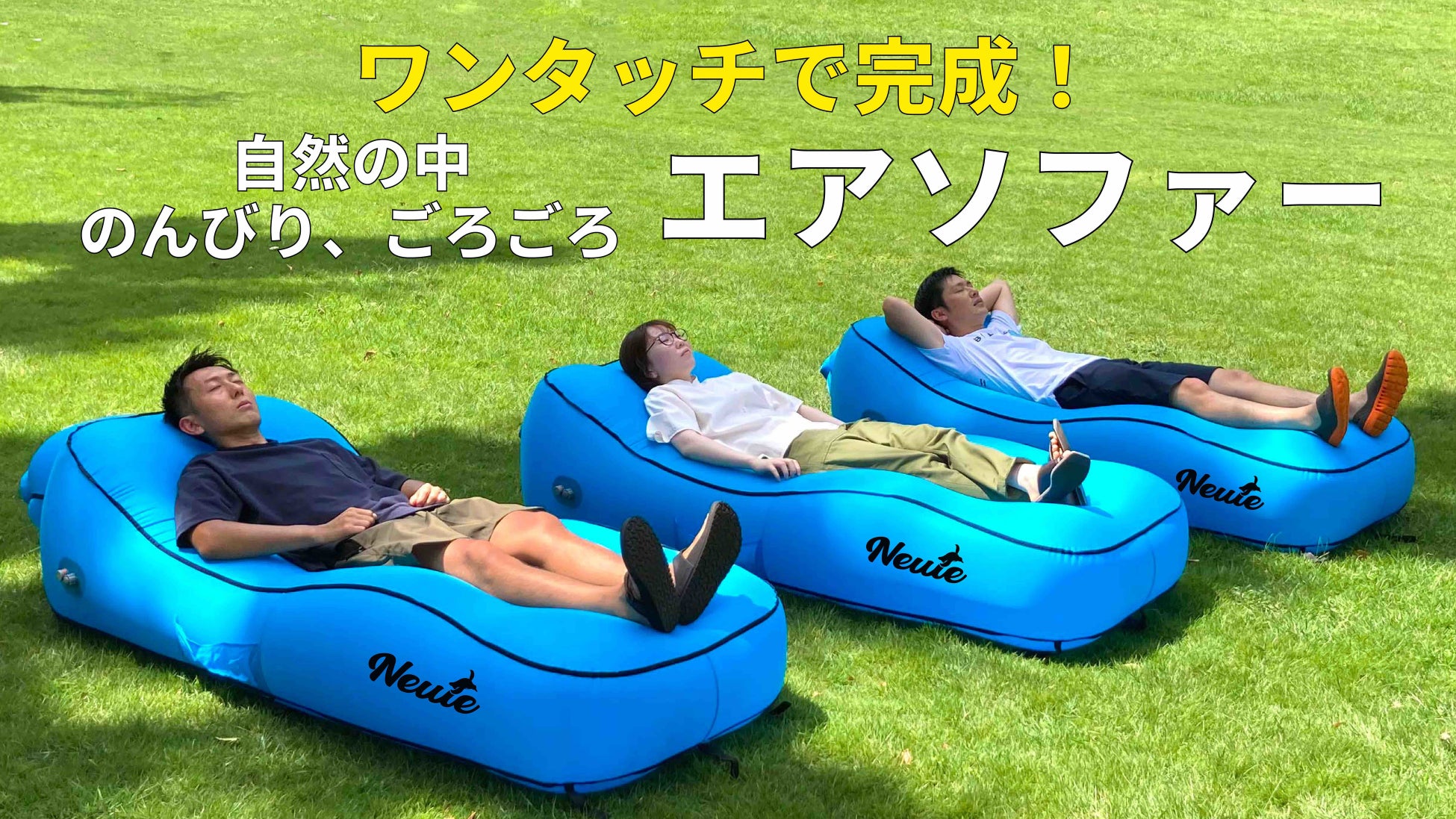 株式会社ファーストペンギン(本社:愛知県名古屋市、代表取締役:野嵜健)が運営するアウトドア用品中心のライフスタイルブランド「Newie(ニューウィー)」は、Makuakeで目標金額の1000%を達成した、ボタン一つで自動的にふくらみ、約60秒で完成する簡易ソファー『ワンタッチ・エアソファー』を8月17日(水)より公式サイトにて一般販売いたします。一般販売に先立ち、本日8月9日(火)より予約販売を開始し、予約特典として折りたたみ式椅子「アコーディオンチェア」を1つプレゼントします。