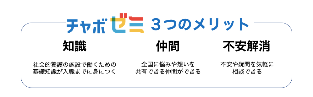 一人でも多くの内定者のかたにチャボゼミに参加いただき、職員のかたが高いモチベーションを保ちながら、長く働き続けられるようサポートしていきます。