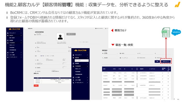 機能 2.顧客カルテ【顧客情報管理】機能:収集データを、分析できるように整える