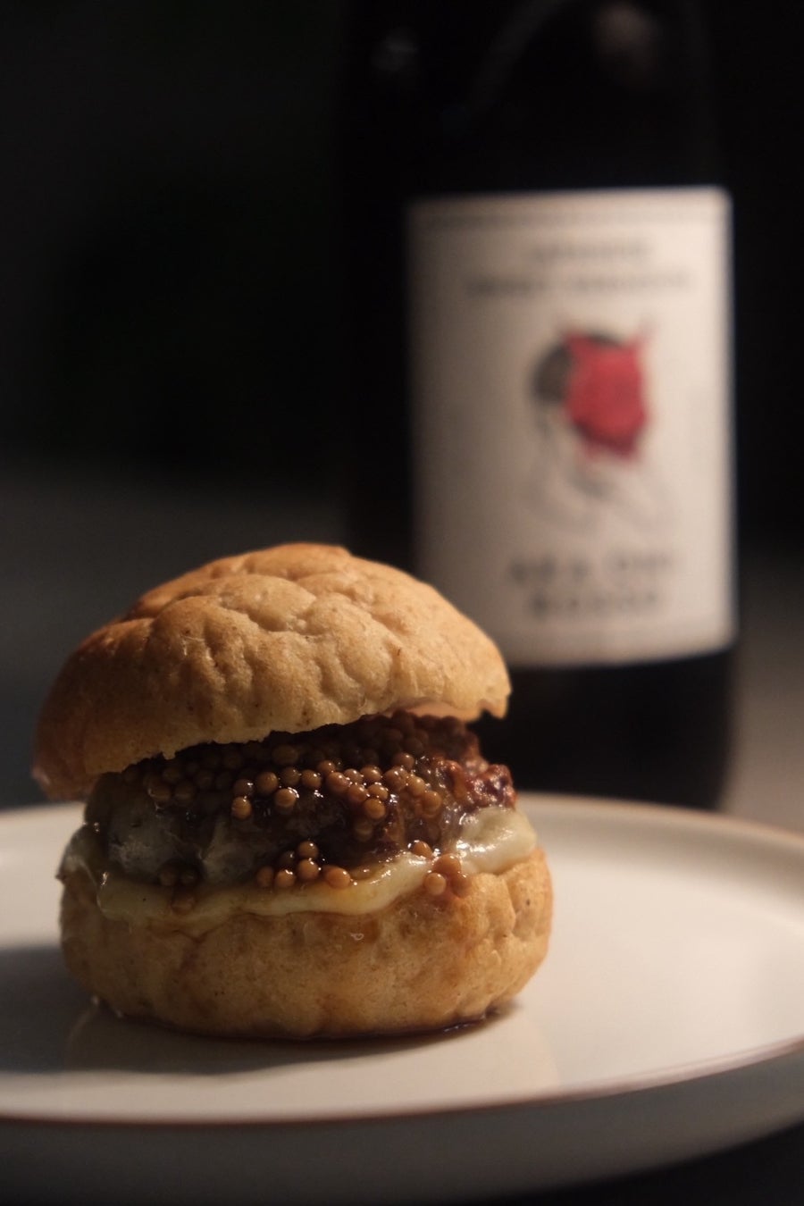 ・Japanese Vermouth AKA-ONI ROSSO (味醂ベースの和製スィートベルモット)× スモークビーフバーガー