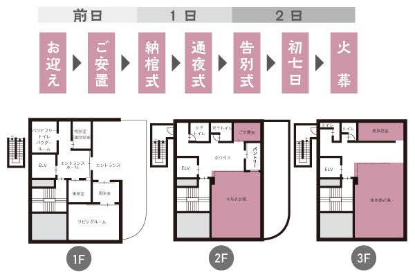 大小3つの式場に加えて2つのご安置室があるからこその柔軟なご提案が可能です。