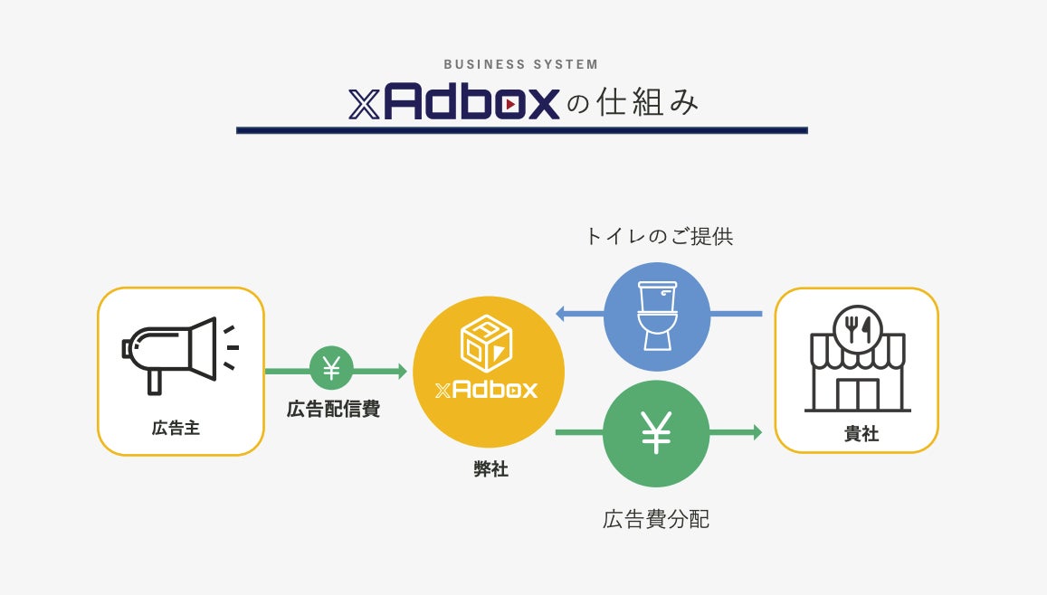 そのような状況を少しでも改善するために、飲食店さまがサービスを導入する際のリスクを最大限減らし、本業に集中したまま何もしなくても収益を増やせる広告配信サービス「TOILET x Adbox」を開発いたしました。