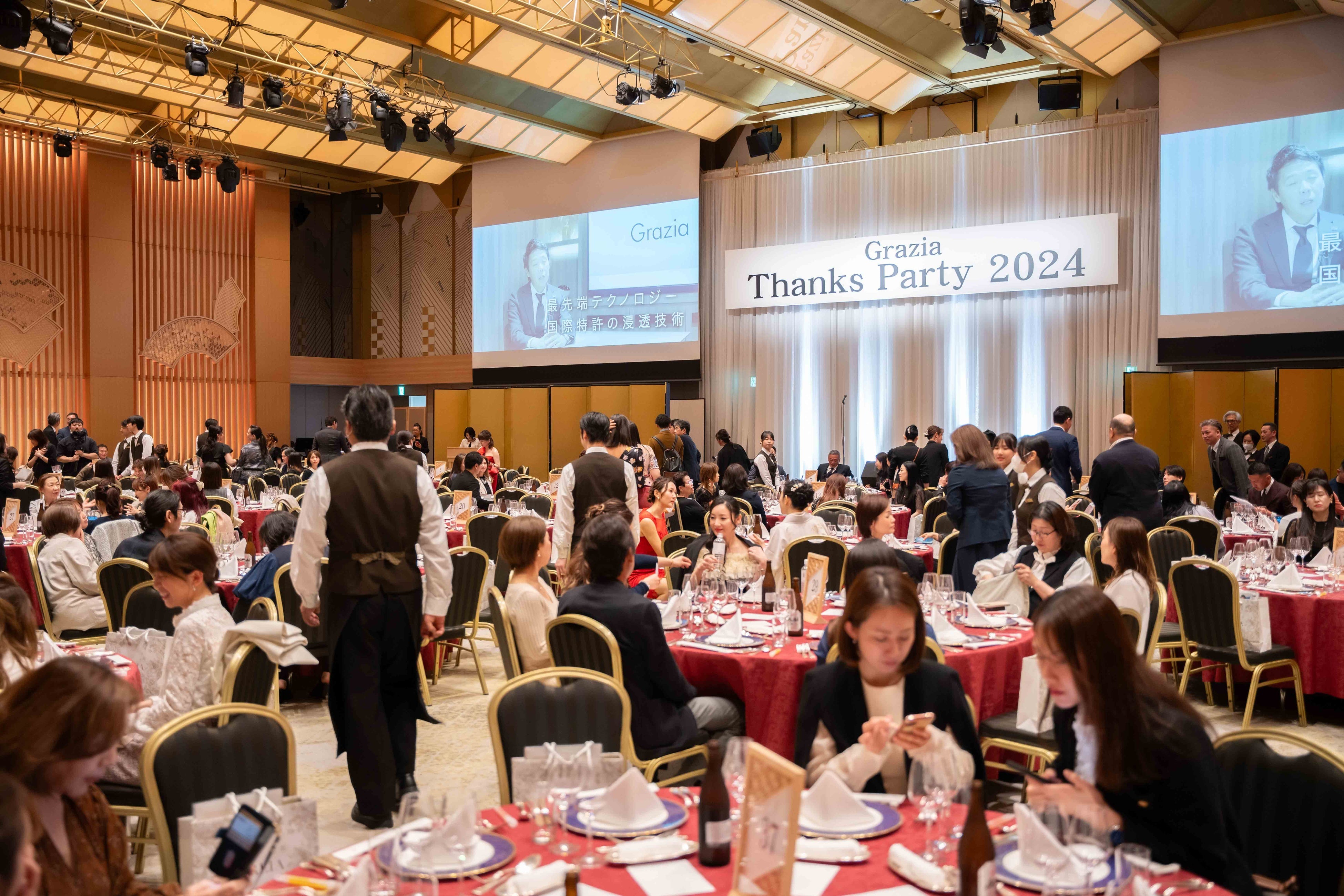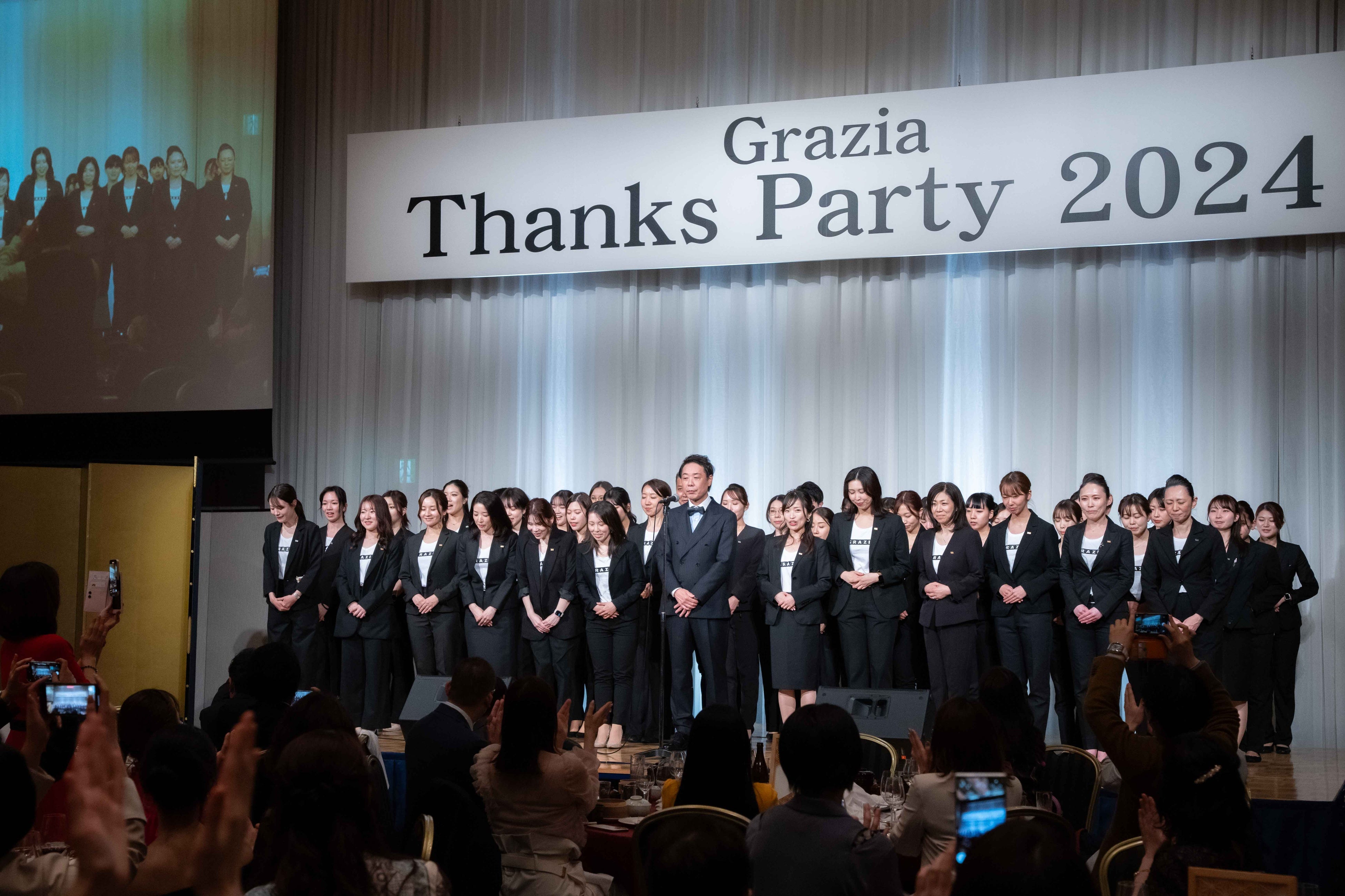 この度第2回となるグラツィアサンクスパーティーは❝エステ経営者が活躍し続けられる社会へ❞をコンセプトに、サロン運営の貢献と美容業界の発展を目指し開催いたしました。業界の女性活躍に向けて先進的な取組を実践するための制度として昨年度からスタートした「ディレイア正規認定サロン制度」により、ハイクオリティな製品と講習会などのサポートで認定サロン様との交流を深めてまいりました。今回ディレイア正規取扱店様の1年間の労を称え、優秀サロン・クリニック様の表彰を行いました