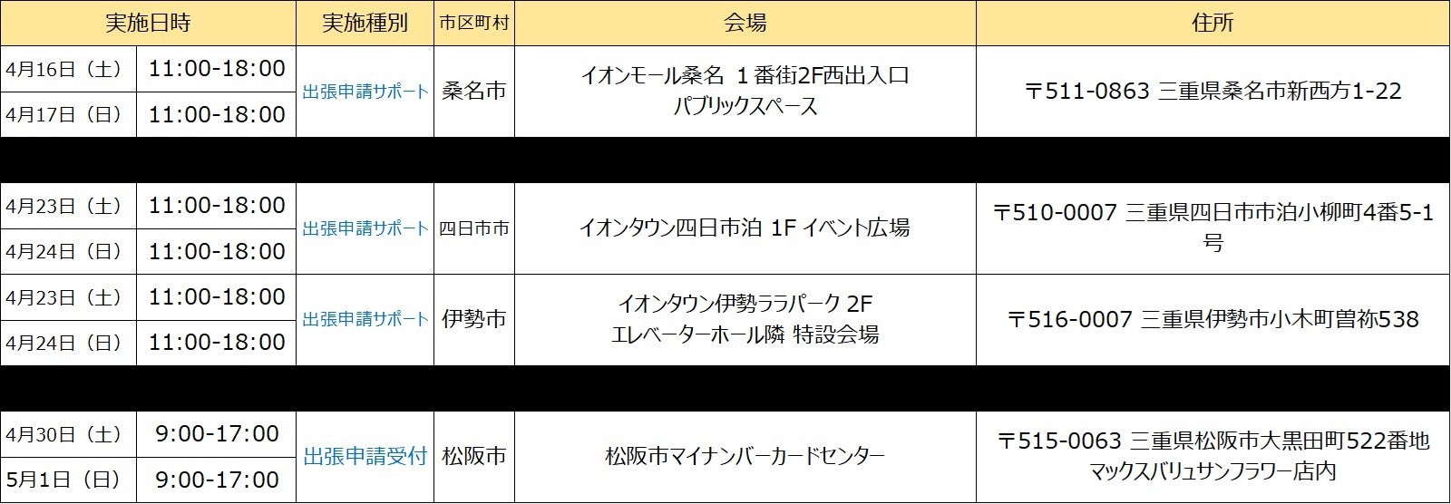 ※開催場所の調整状況や新型コロナウィルスの感染状況等により、「出張申請受付」及び「出張申請サポート」の開催を中止・延期、または実施内容が変更となる可能性がございます。