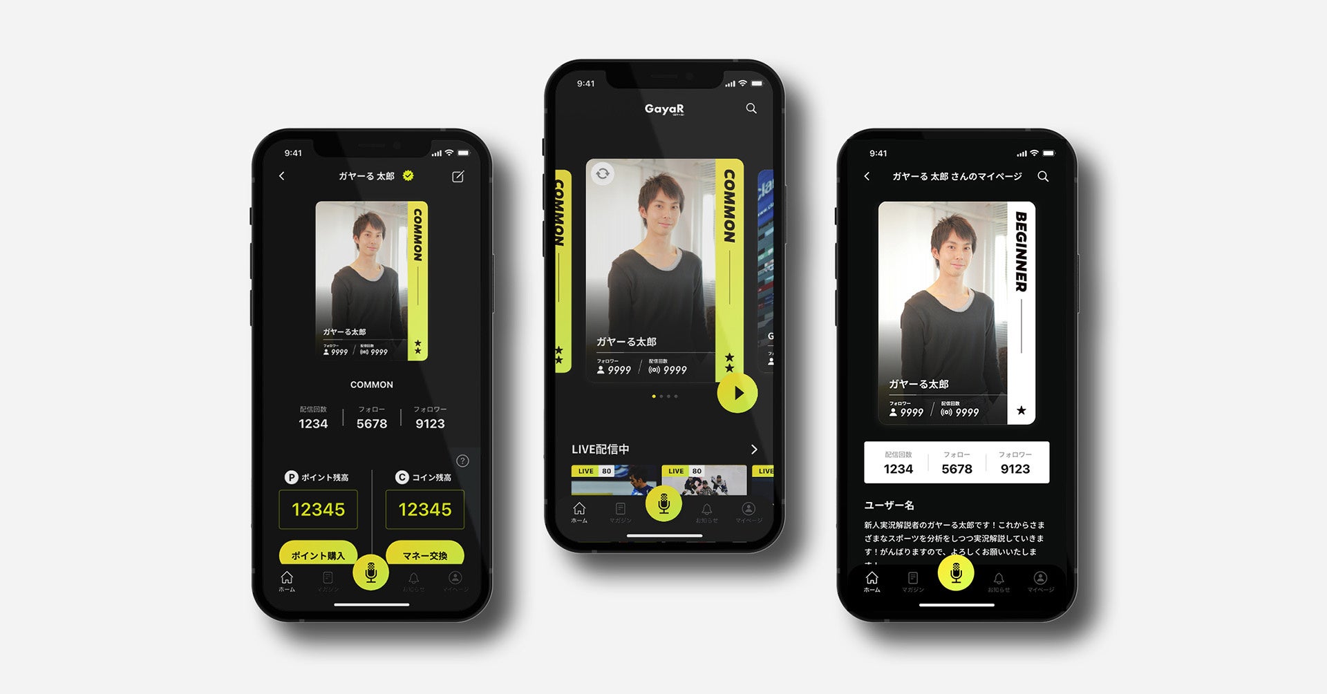 音声配信サービスの利用者増加に伴い、音声広告やライブ配信で配信者側が収益を得られる仕組みも多数登場し、音声配信を中心に活躍するユーザーは年々増加しています。「GayaR」はスマホさえあれば、誰でもどこにいても実況ができるプラットフォームを目指します。