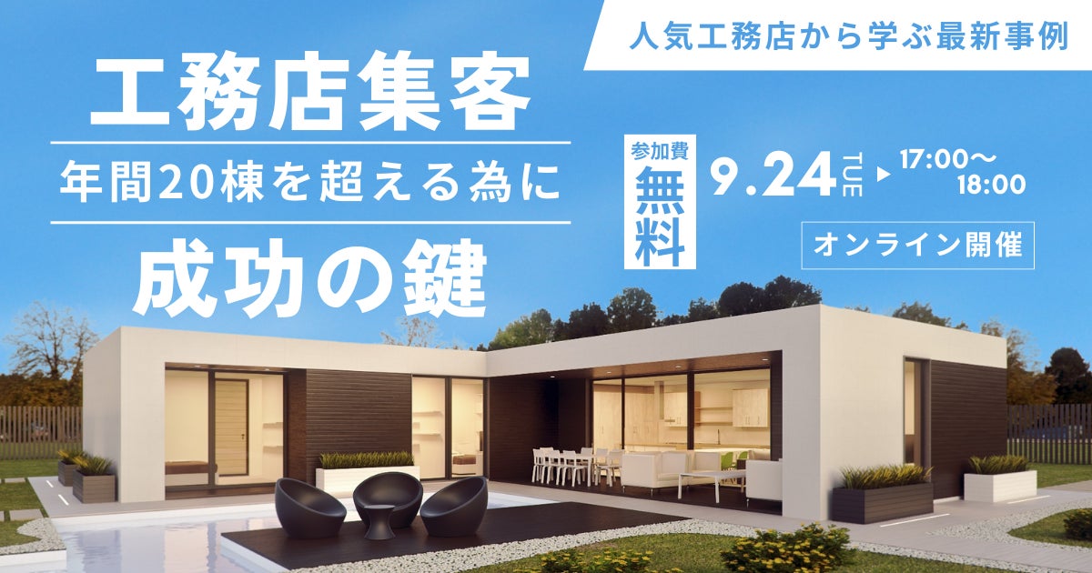 工務店集客の成功の鍵|人気工務店から学ぶ最新事例【2024年9月24日(火)17:00~@オンライン開催】
