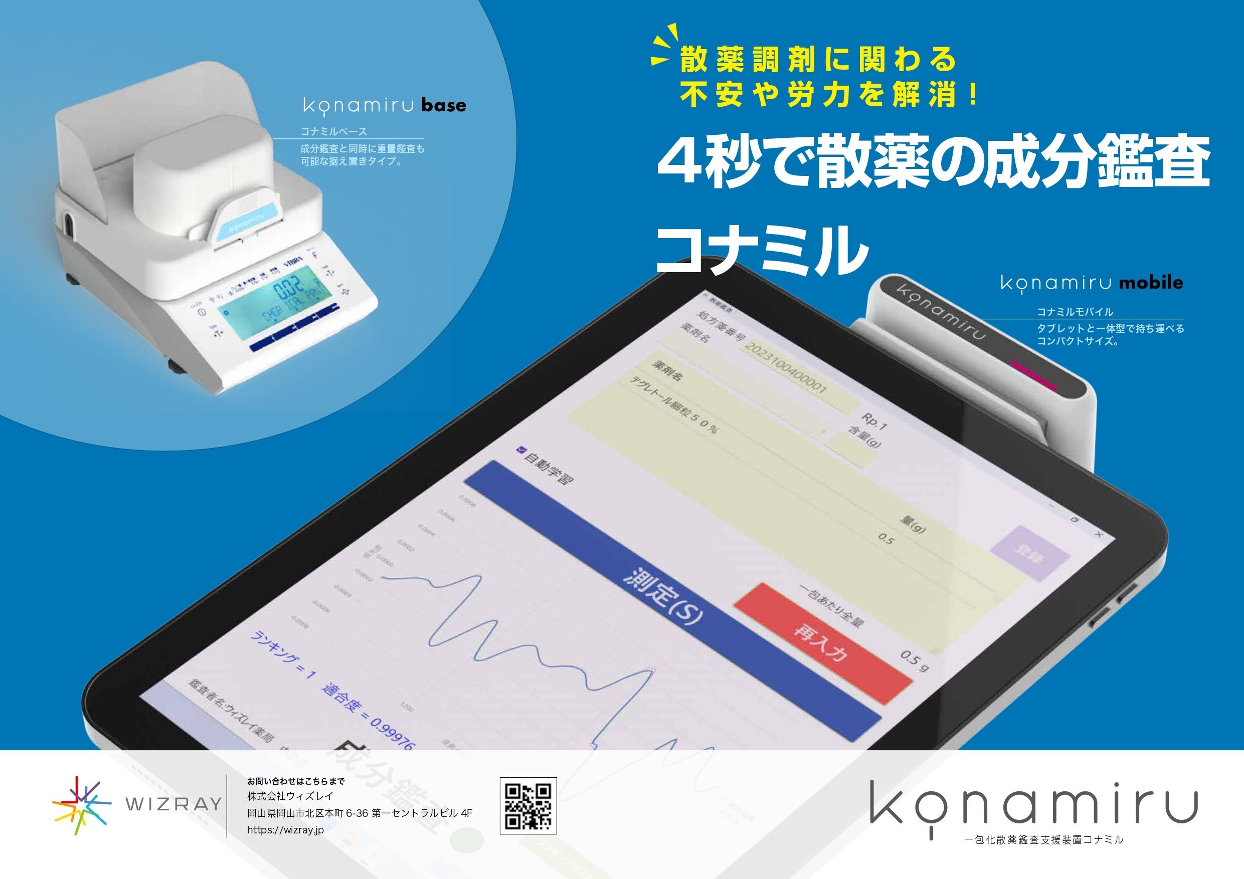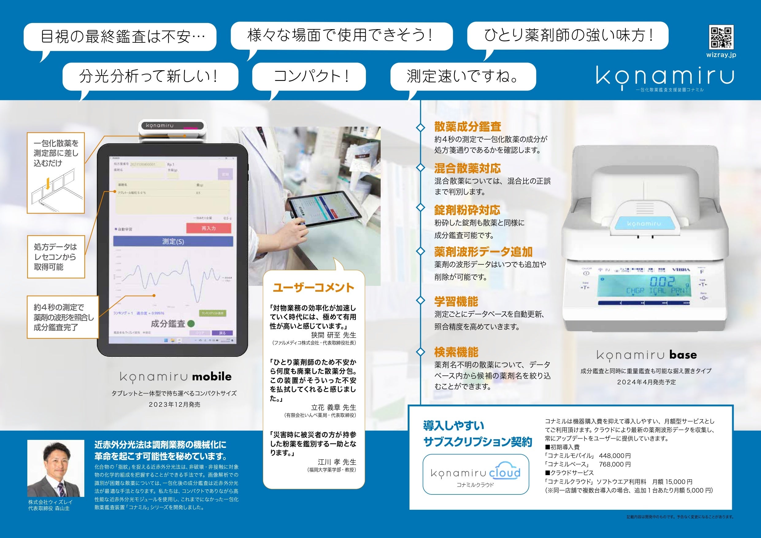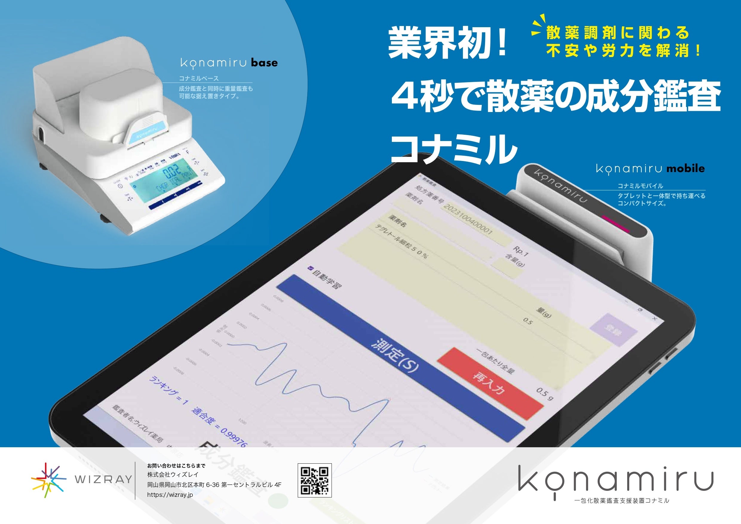 株式会社ウィズレイは2023年12月12日(火)、携帯型散薬鑑査装置「コナミルモバイル」およびクラウド式の薬剤識別アプリ「コナミルクラウド」を同時にリリースします。