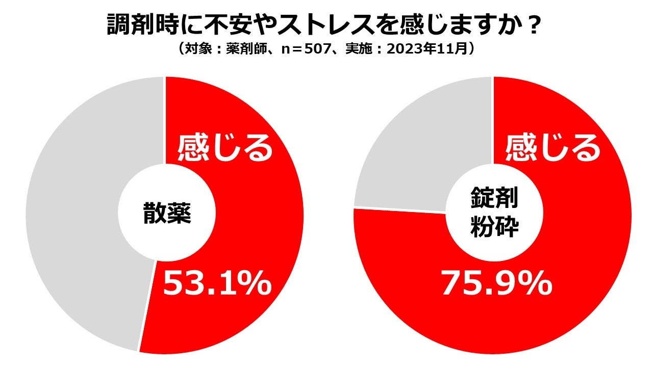 薬剤師の多くは散薬(粉薬)や錠剤粉砕の調剤に関して不安を感じながら業務にあたっています。薬剤の取り違え、混合散薬の混合比間違いや倍散調製時の希釈倍率間違い、錠剤粉砕時の手順ミスなど、場合によっては患者さんに大きな健康被害を与えることにもつながるためです。薬剤師であれば、一度や二度は散薬調剤時に「あれ?」と思い、不安の中で時間をかけて調剤手順の振り返りを行ったり、あるいは調剤した薬剤を廃棄してもう一度調剤し直したり、ということは経験のあるものです。