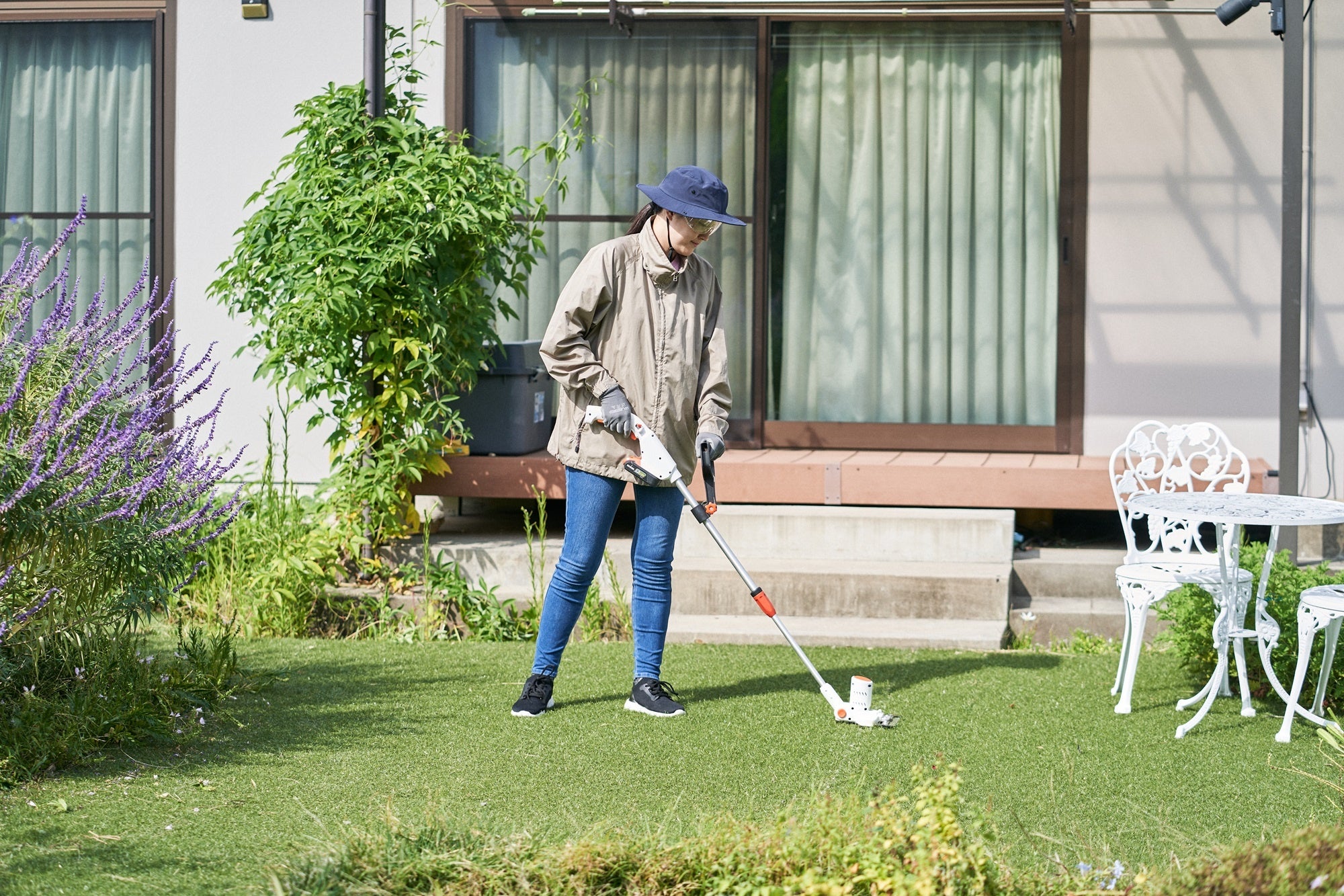 掃除機と同じように、前後に動かすことで刈れるので初めての方でも抵抗なくお使いいただけます