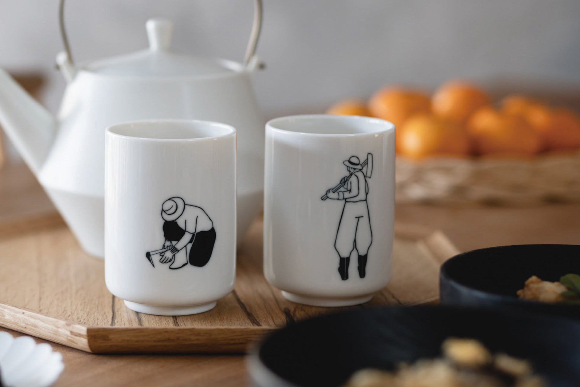 湯呑のお茶は熱々で、それで手を温めながら、冷めてきたらいただく。そのひとときが至福ではないかと思います。イラストレーター・たかなつめさんのイラストで、コタツやみかんに合う湯呑をつくりました。