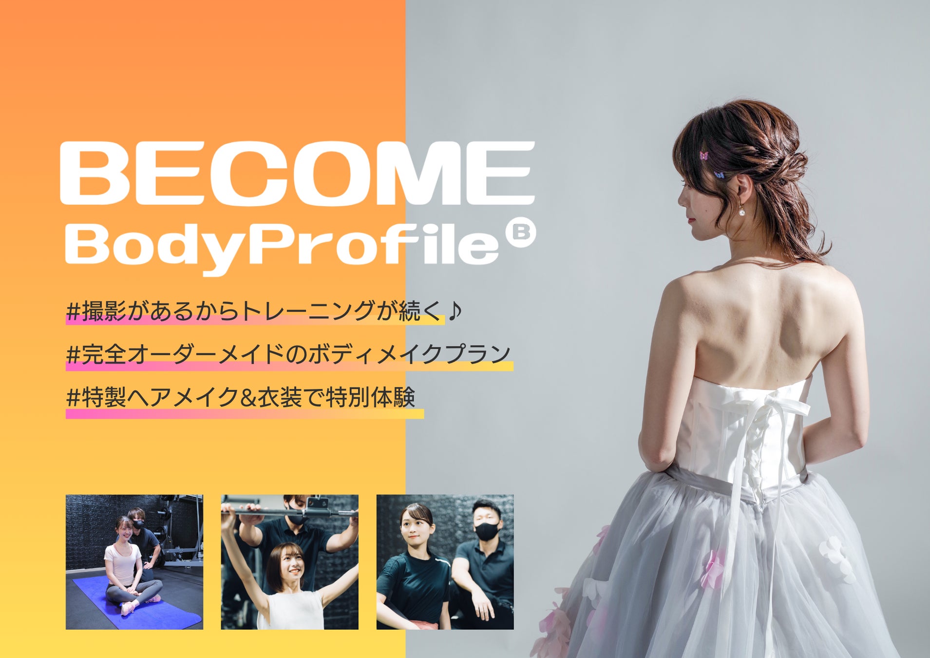 BECOME Body Profileは日本初『ボディメイク×プロフィール写真撮影』を組み合わせたフィットネススタジオサービスです。