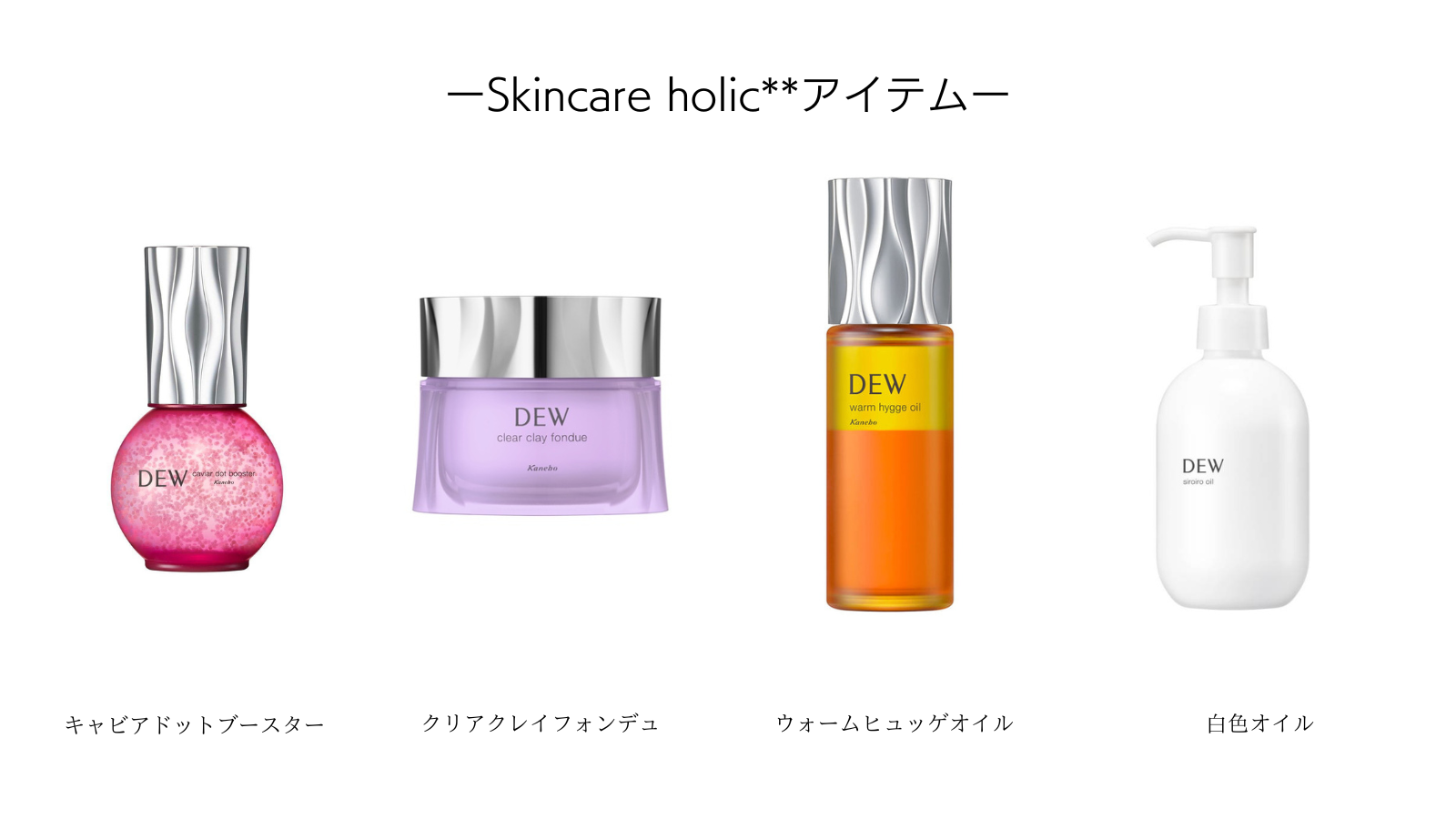 自分自身と向き合うスキンケアの時間が、充実した日々につながっていくと考えるDEW(デュウ)の新作アフターグロウドロップ(10.1発売)を中心とした、Skincare holic**のアイテムを