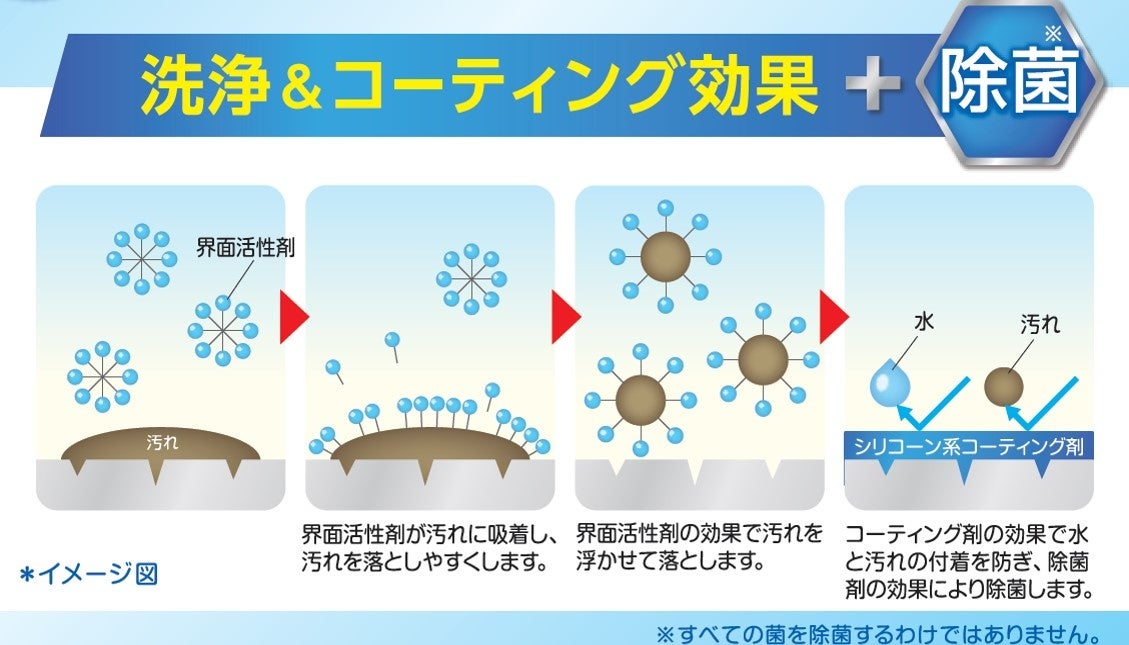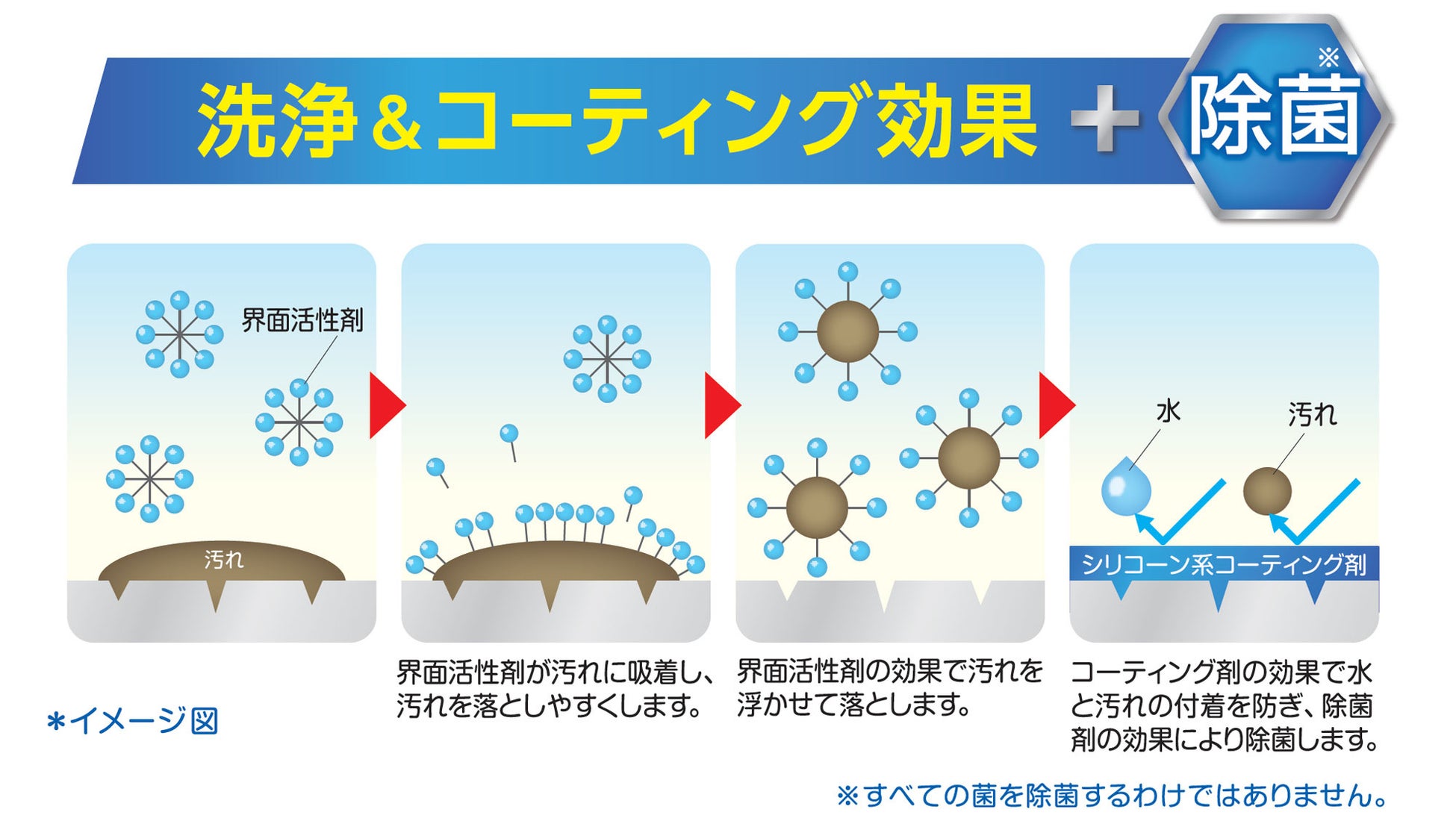 成分:界面活性剤、安定化剤、撥水剤、除菌剤、pH調整剤、香料