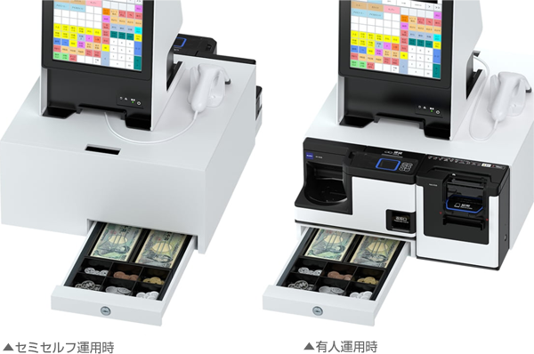 現金を収納するドロワーを標準装備しているため、万が一のつり銭機トラブル時には、POSレジで会計処理を行った後、ドロワーから現金を直接入出金する運用に切り替えることが可能です。