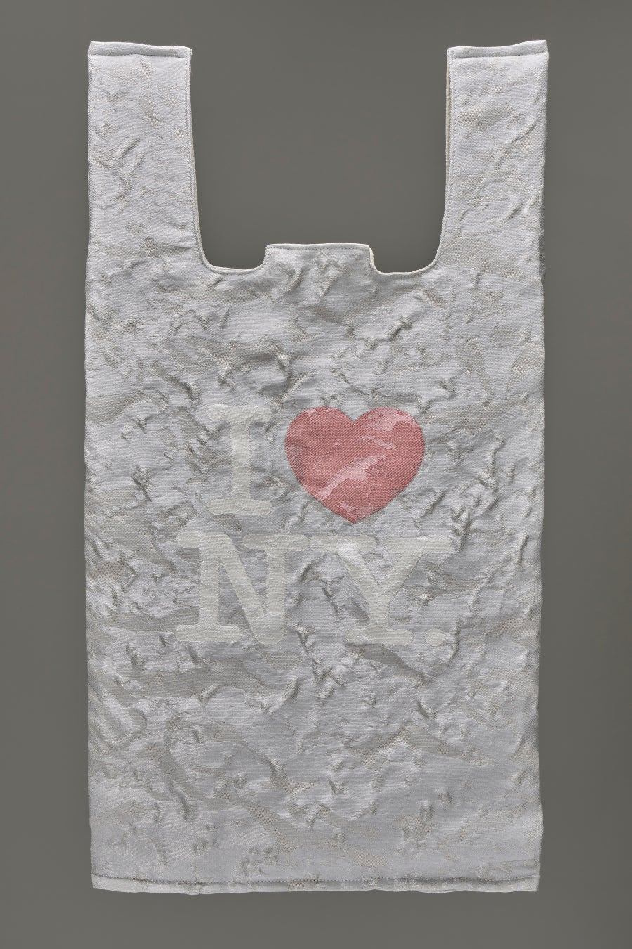 1688年に創業し、伝統技術の継承と革新的な挑戦を両立させる京都、西陣織の老舗「HOSOO」。現代のアメリカのスーパーで広く使われるビニール袋を模倣した本作は、極めて高度な織り技術によって生産される布と、松山智一による現代美術のアプローチによって新旧の文化が融合され、機能性が重視される日用品の中に真新しい価値が吹き込まれています。