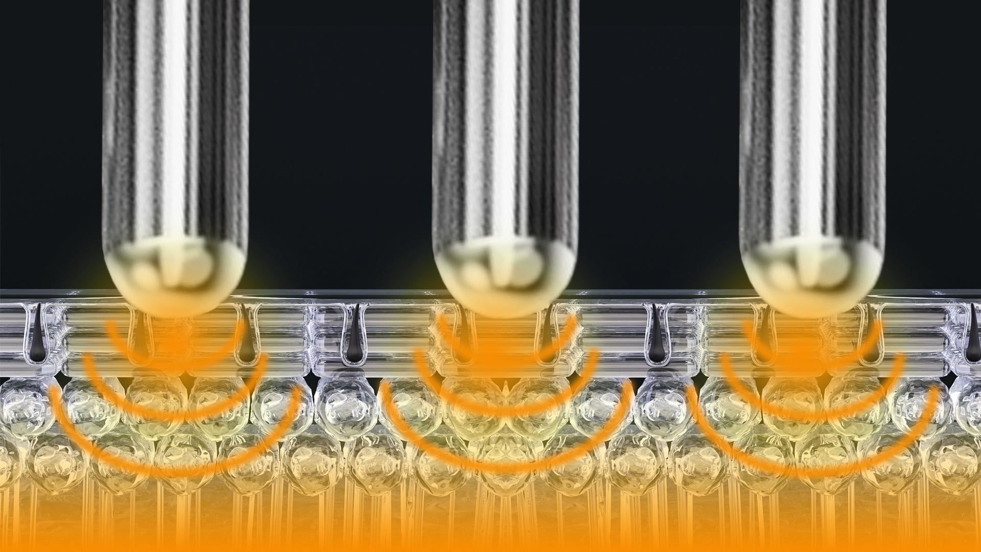 ブラシヘッド中央に配置した7本の美容液導入ブラシは、背面にある液体タンクに充填したケアリキッドや美容液を効果的に塗布します。市販のスカルプエッセンスや美容液を充填でき、ケア剤の吸収をサポートします。