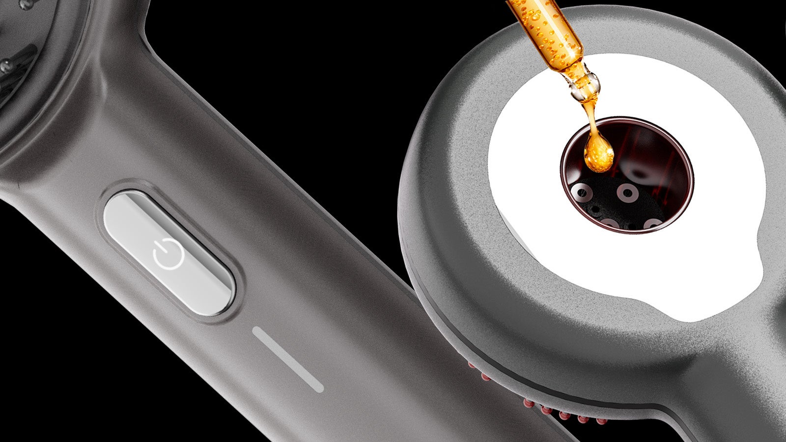 電源ボタンを押して頭皮や肌にあてて、ほぐすように本体をゆっくりと滑らすだけ。電源ボタンを押すことで、お好みに合わせてWAVE動作とEMSの強度を同時に3段階で調整が可能。また、本体背面の液体タンクに、市販の美容液やスカルプエッセンスを入れれば、ケアしながら塗布できます。