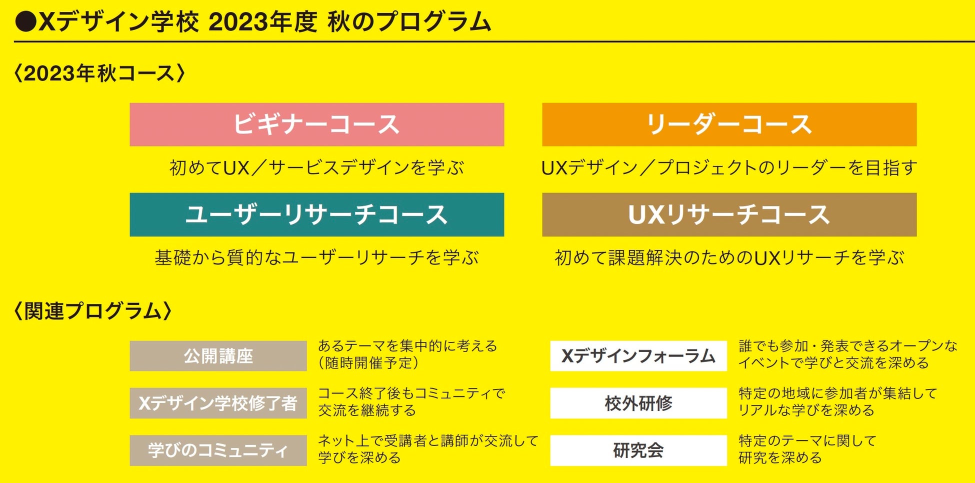 今年の秋はXデザインでわくわくビジネスを、「社会人がUXデザイン、サービスデザイン、リサーチを学ぶ、Xデザイン学校2023年秋のオンラインコース」を発表