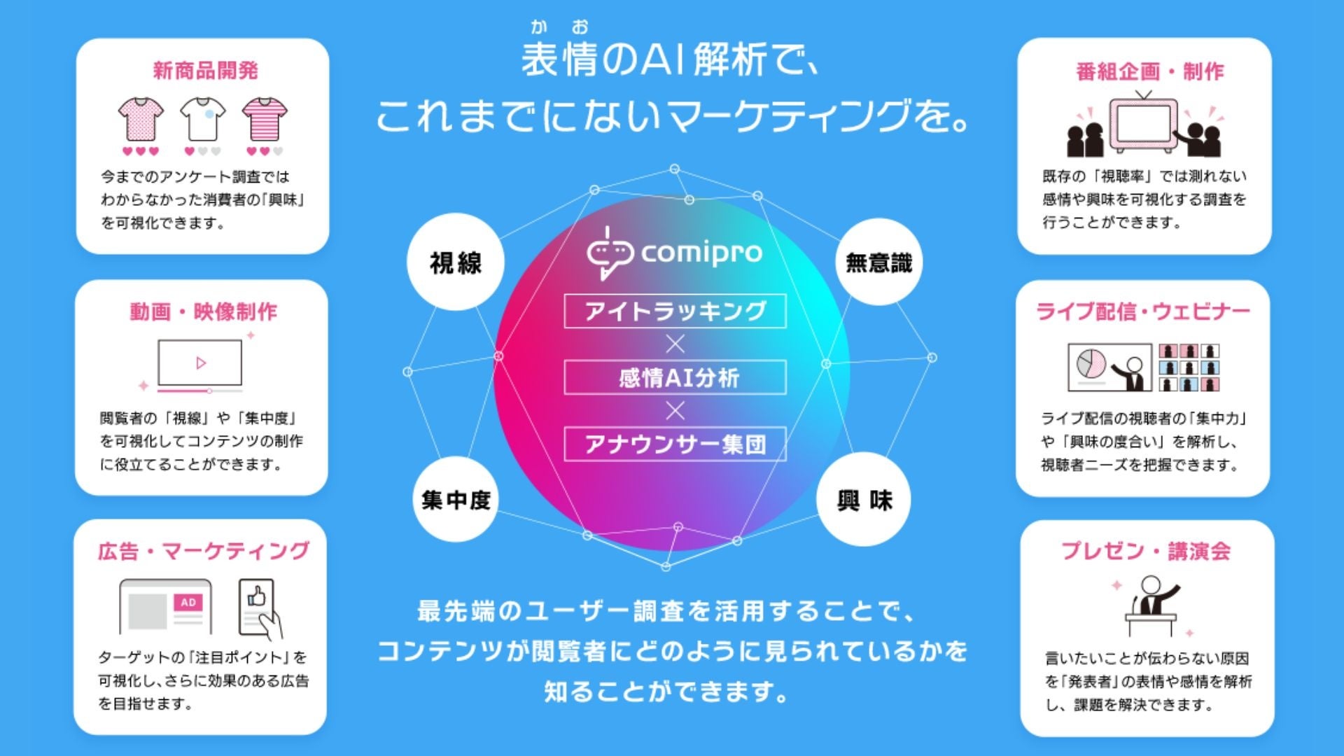 元アナウンサーが開発!アイトラッキング×感情AI解析で顧客ニーズをみえる化するユーザー調査システム「comiproAI(コミプロAI)」を3月13日より提供開始