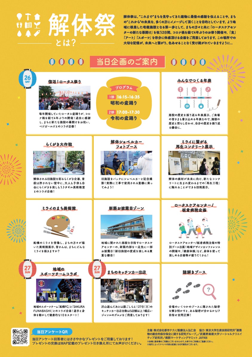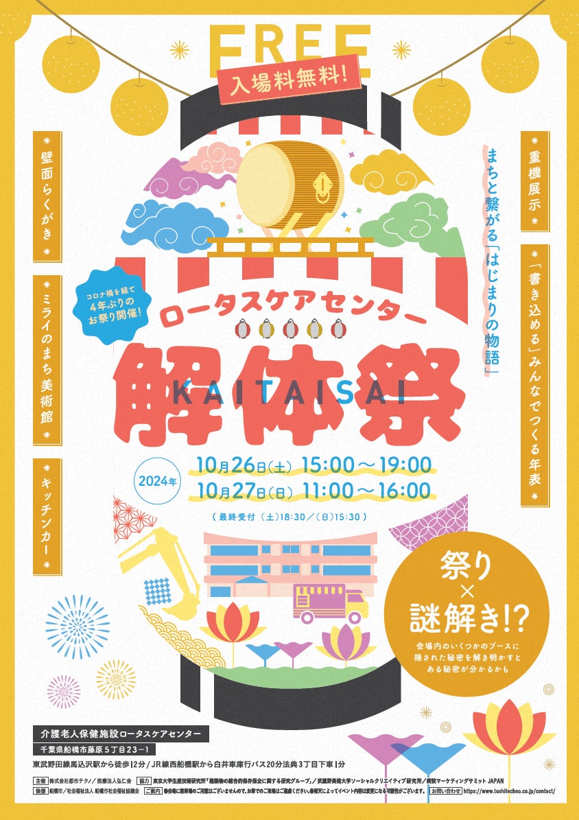 2024年10月26日~27日 都市テクノが、医療法人弘仁会、病院マーケティングサミットJAPAN、武蔵野美術大学と共同で『ロータスケアセンター解体祭〜まちと繋がる「はじまりの物語」〜』を開催。