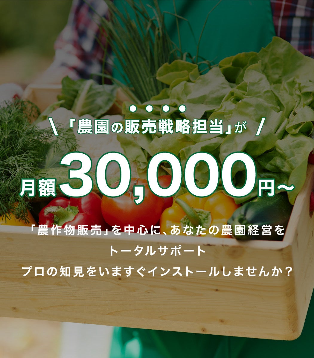 「農作物販売」を中心に、あなたの農園経営をトータルサポート。プロの知見をいますぐインストールしませんか?