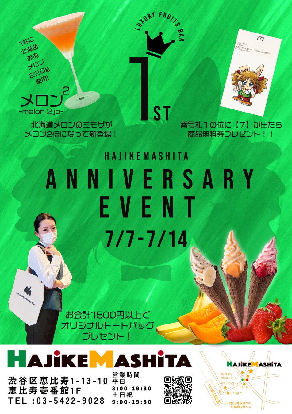 2021年7/7にオープンしたはじけましたも無事に1周年を迎えることができました。 日頃からご愛顧いただいているお客様に感謝企画としてANNIVERSARY EVENTを7/7より1週間限定で開催いたします。