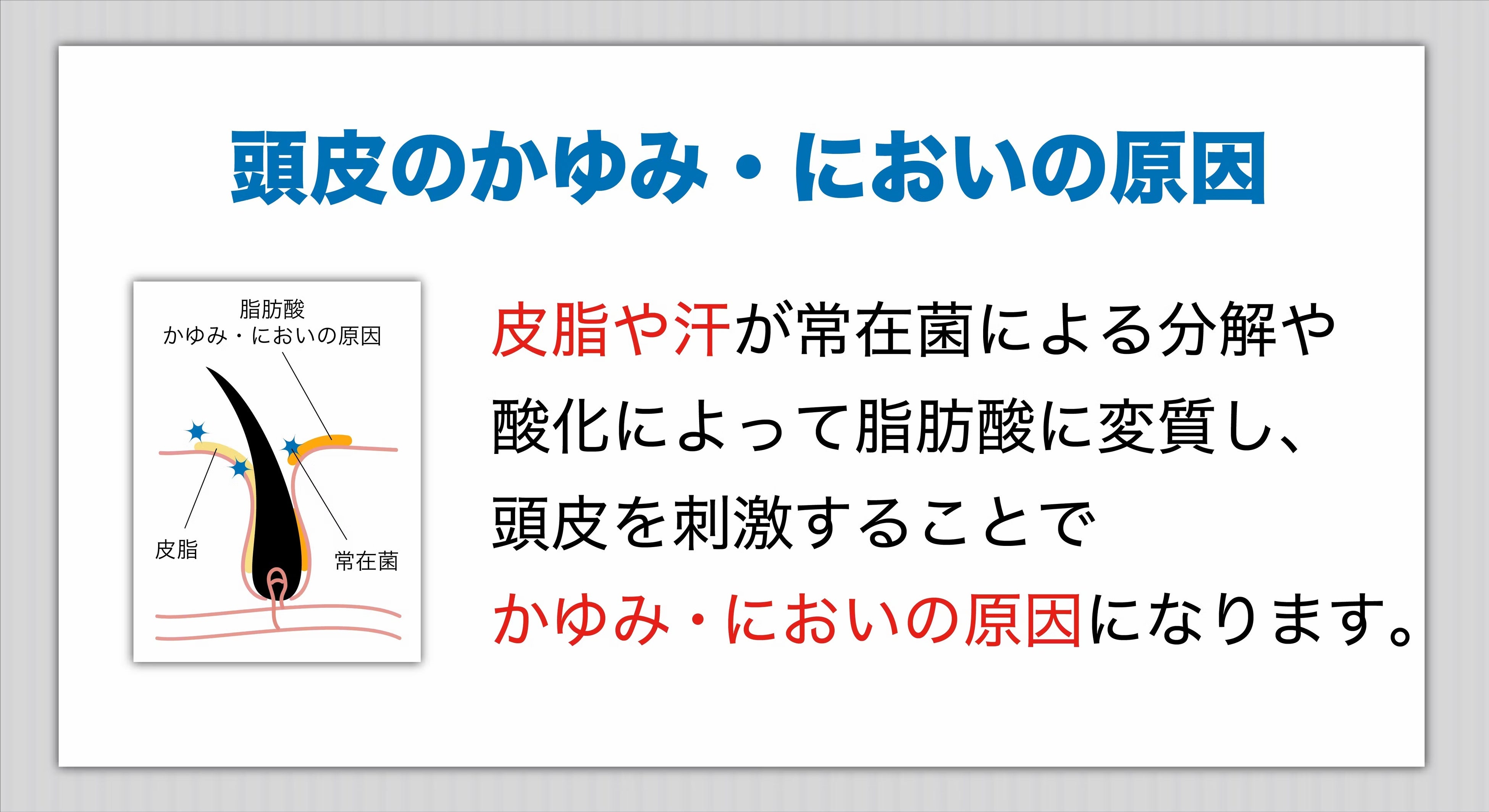コンセプト:シャンプーだけでは落とせない頭皮の汚れも毛穴から1発洗浄し、頭皮トラブルの悩みを解決します。