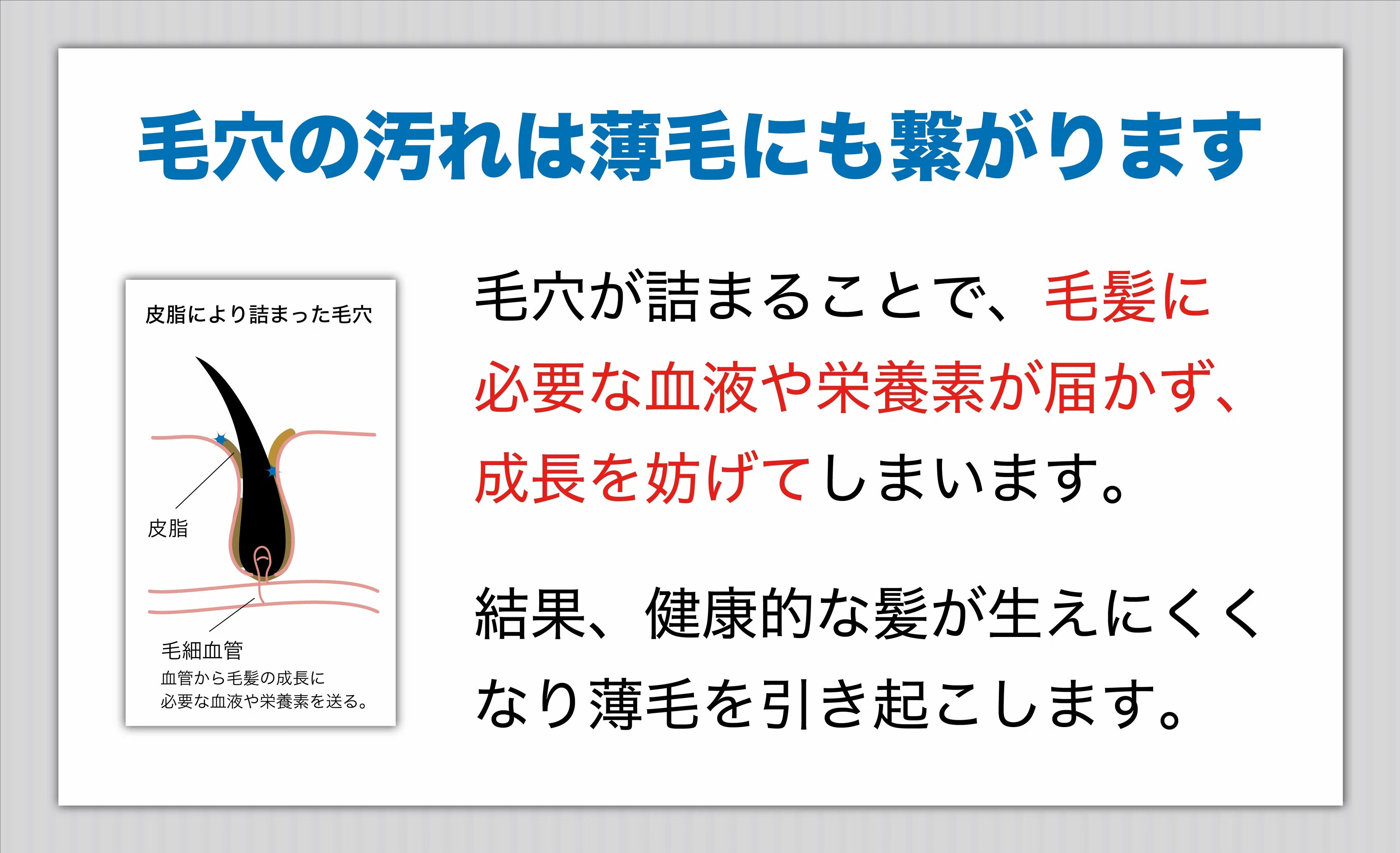 しかしながら、頭皮も同じ皮膚なのに洗顔と同じように毛穴を洗う習慣はありません。