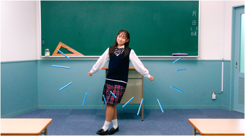 冒頭の「♪ゼンキョーケンゼンキョーケン」の部分は全教研の『全』の部首を腕で表しています。『全』の形に近づけるよう、角度にこだわり細かく調整をしました。また、後半の「♪ZEN ZEN 全教研」の部分では、全教研の『Z』をイメージした振り付けで、CMの中に『全教研』がたくさん詰まった内容になっています。