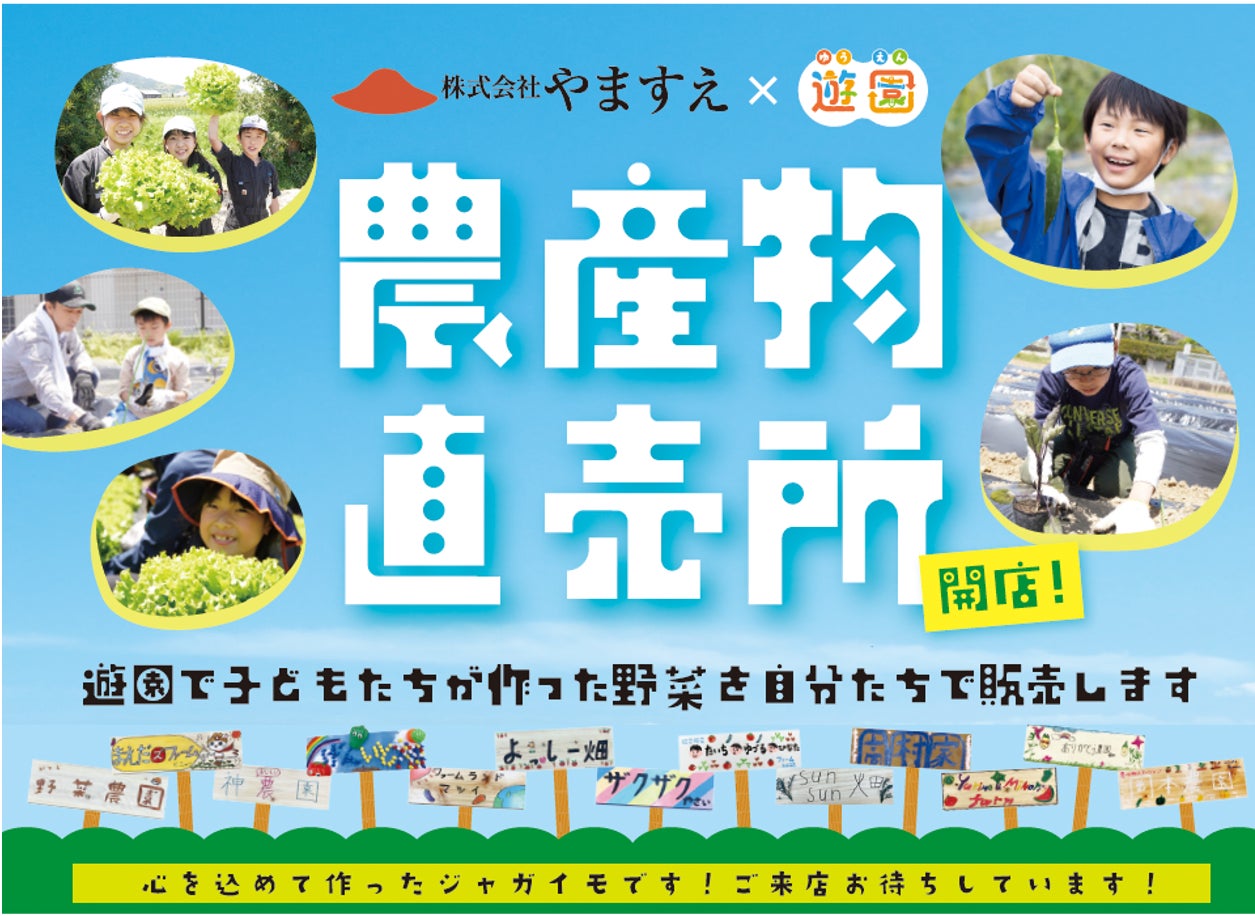昨年度から始まった、農業を通して循環型経済“サーキュラーエコノミー”を体験する遊園プログラムでは、野菜を販売するイベントを、6月25日(日)に株式会社やますえ 直売所(糸島多久523-1)にて実施します。今回は昨年度の参加親子が植えたじゃがいもを販売予定。子どもたち自らが「どうしたらたくさんのお客様に来てもらえるか、買ってもらえるか、喜んでもらえるか」を考え、じゃがいもの競りや重さあてゲームなどのイベントも企画しています。