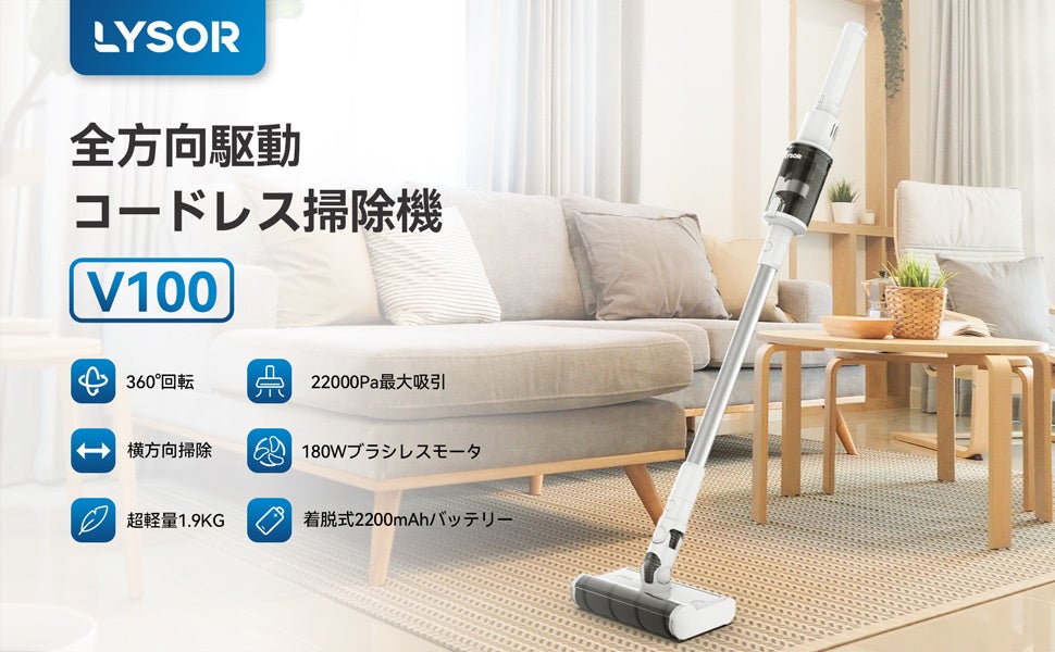 【新品登場期間限定キャンペーン】全方向駆動自在操作·360°回転·強力吸引·ツインブラシ搭載! LYSOR超軽量コードレス掃除機V100が販売開始、最大およそ10900円割引!特別クーポンのお知らせ