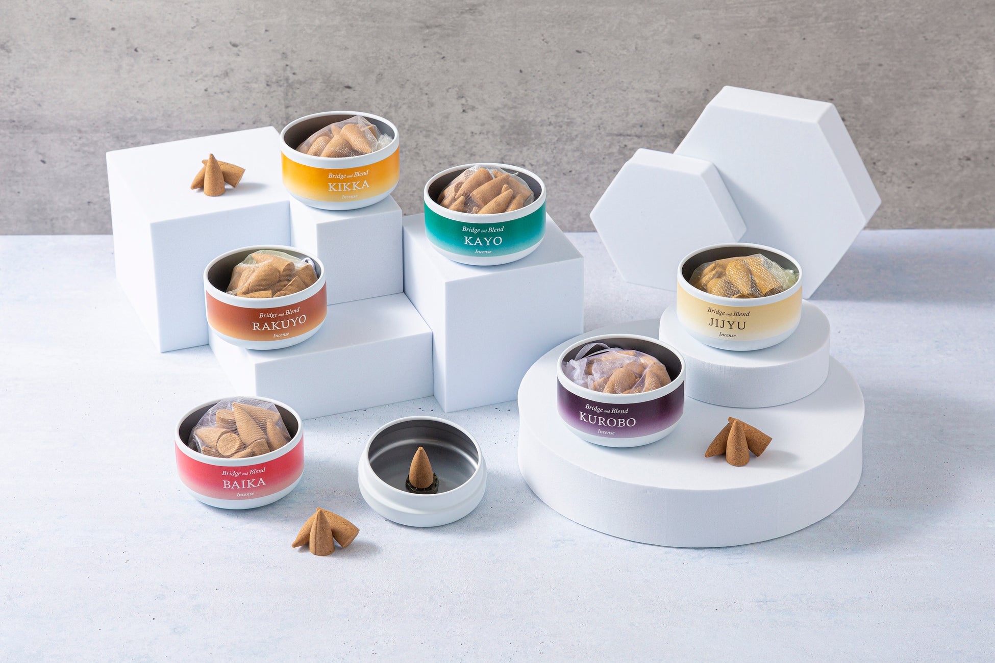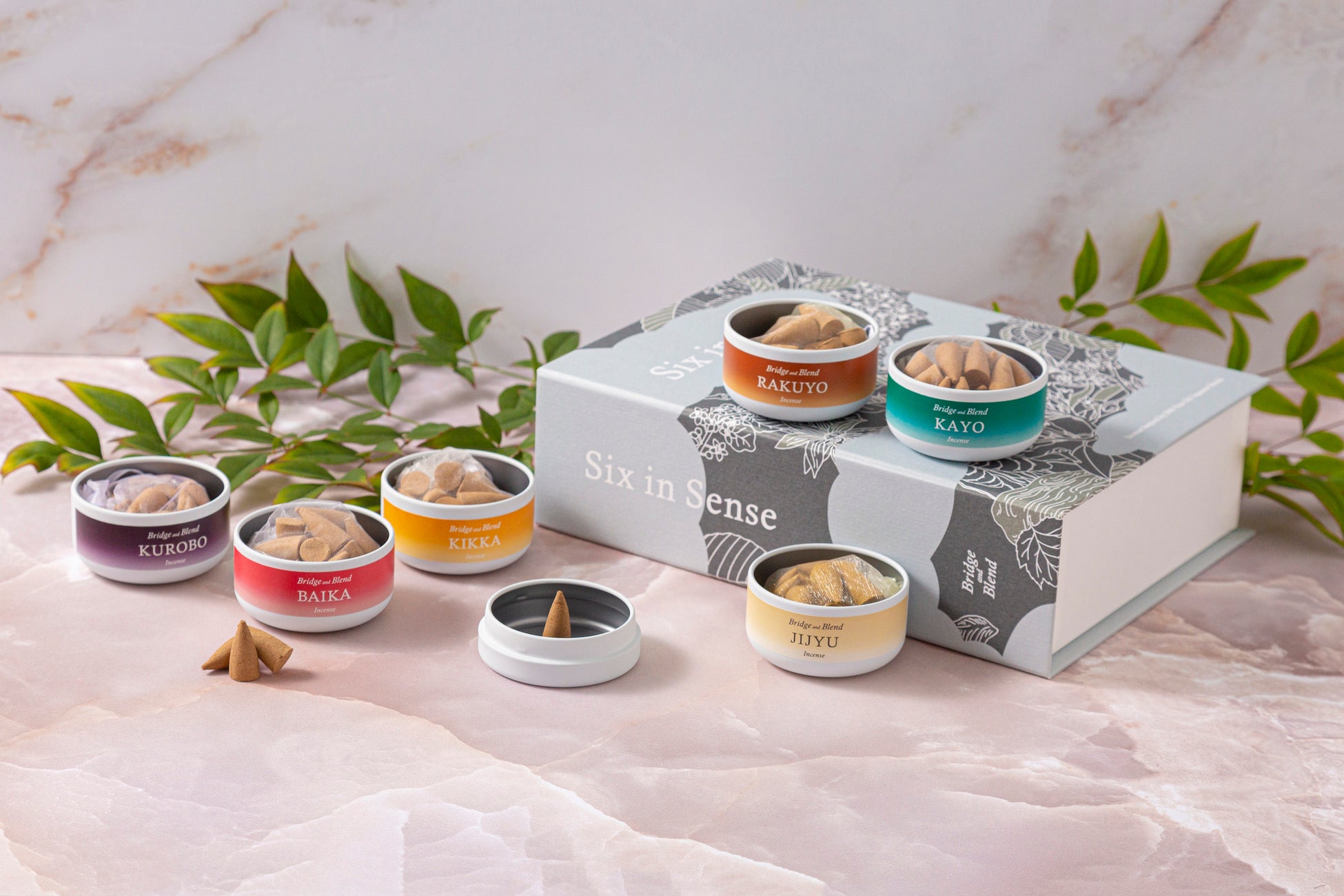 お香ブランド「Bridge and Blend」のコレクション「Six in Sense」は、1000年前の日本の調合にインスパイアされたお香です。平安時代を代表する「六種の薫物」を可能な限り忠実に、6種の香りを現代風に再現しました。